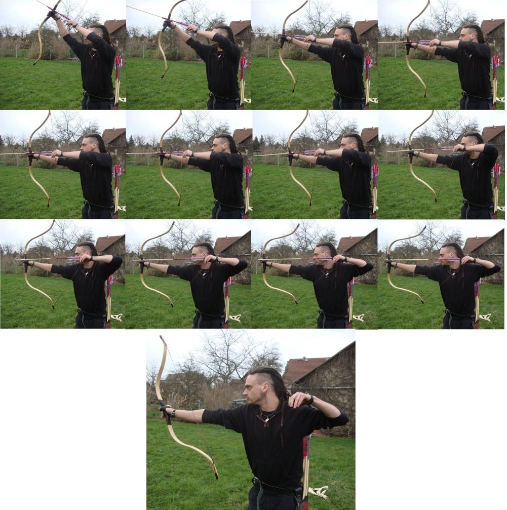 ob man die zughand nach hinten gerade weiterführt ist mmn ansichtssache. wem es hilft noch direkter entgegen der zugrichtung des bogens zu lösen soll es machen - nötig ist es nicht.