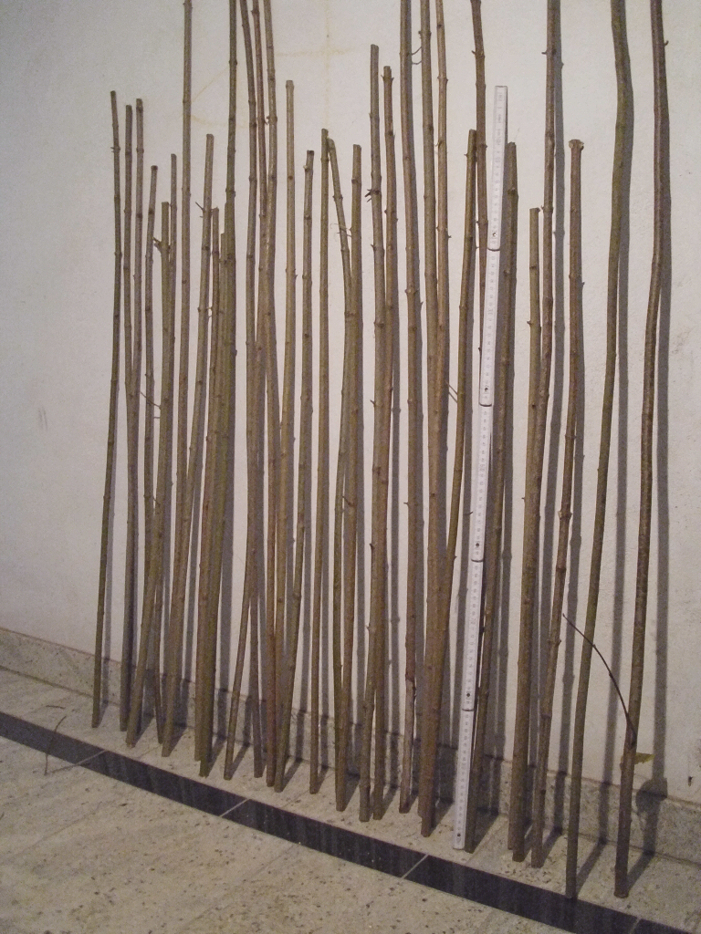 Die Schäfte sind jetzt 3 Tage ohne Rinde getrocknet und haben im Mittel ca.35% ihres Ursprungsgewichtes verloren.