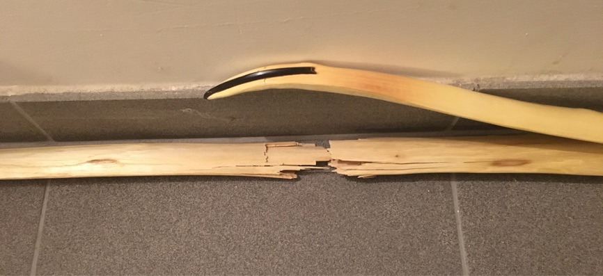 Jetzt kann ich mir gut vorstellen, dass der erhebliche Druck sich auf die Holzzellen ausgewirkt hat. Also sogar Stauchfalten auf dem Rücken produziert hat. Die erneute Bauch Druck- Rücken Zugbelastung könnte sich wie ein verkehrtes Aufspannen eines normalen Bogens ausgewirkt haben. Bekanntlich mögen die so was überhaupt nicht!