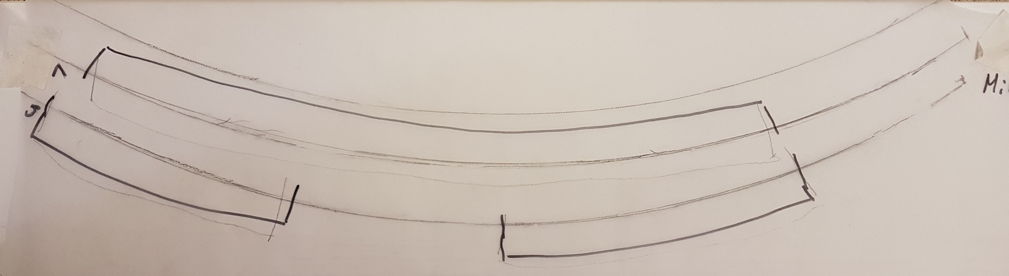 Ich habe mal die Biegungen der beiden WA analysiert. Beim peilen über den Bauch hatte ich andere Stellen für die Abweichungen der Ohren ausgemacht, aber so kann man sich täuschen. Ich habe Transparentpapier genommen und die Kurve der WA jeweils am Rand abgenommen, alles rumgedreht und die andere Seite abgenommen.