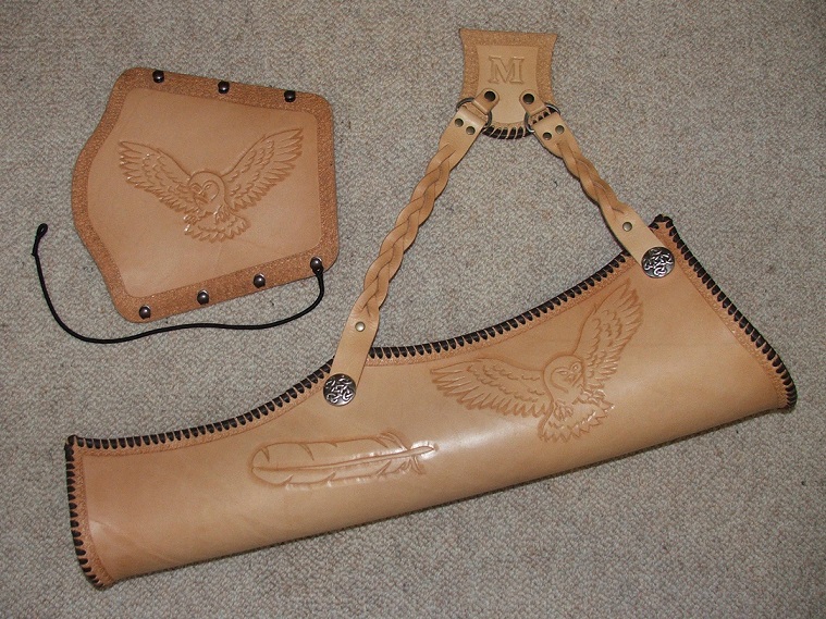 Meinen Köcher habe ich schon zum Training getragen und bin froh das alles passt. Nur für den Armschutz nehme ich beim nächsten mal etwas dünneres Leder, 4 mm sind da etwas steif beim tragen. Aber das wird sich bei häufigem Gebrauch auch noch anpassen.