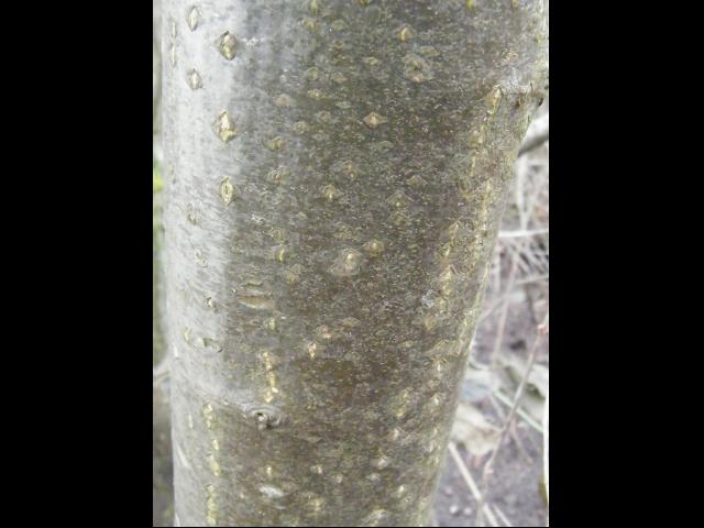 Okay dann kein Hasel. Ich hab nochmal genau geguckt, es dürfte sich bei der Streitigen Kirsche dann eher um eine gemeine Traubenkirsche handeln. Diese hat tatsächlich eher kompakte Korkzellen und nicht diese horizontal Länglichen...