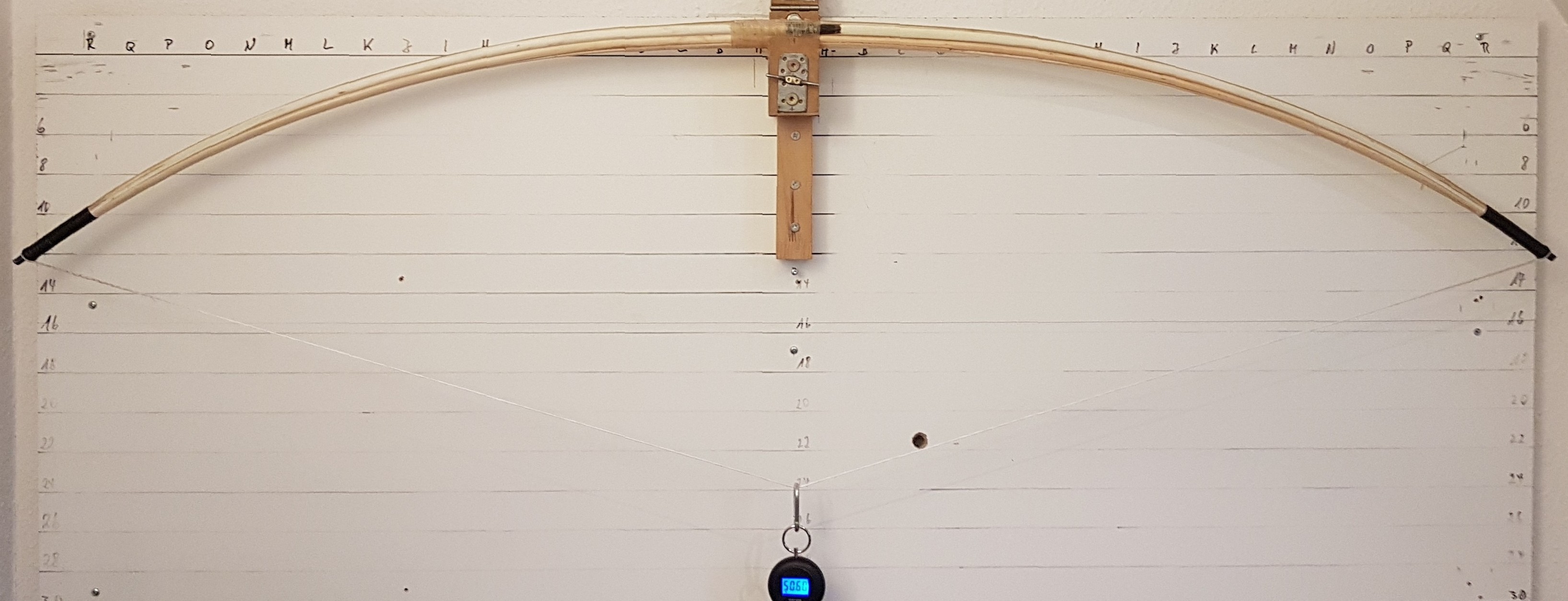 Heute hab ich das Dingens weiter gebogen, immer mit schönem Knistergeräusch beim erstmaligen erreichen des jeweiligen Auszugs. Hierbei bin ich dann auf max. Aufmerksamkeit, bei 28" (60#) hat es geknackt, nicht geknistert. Mir war sofort klar dass etwas gebrochen sein muss und so ist es auch. Ein seitliche Hasel hat aufgegeben.