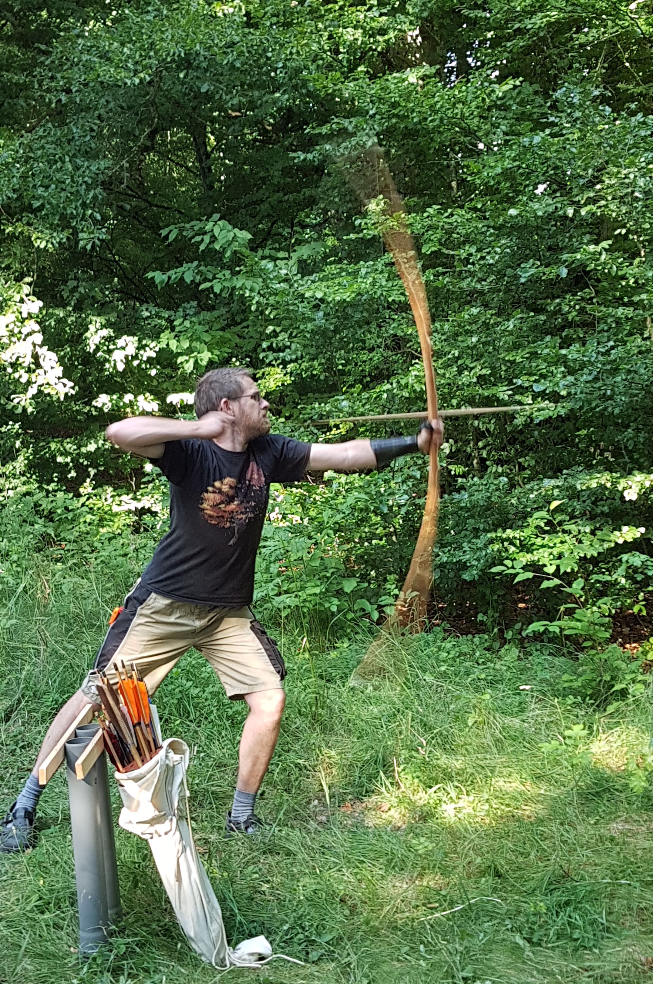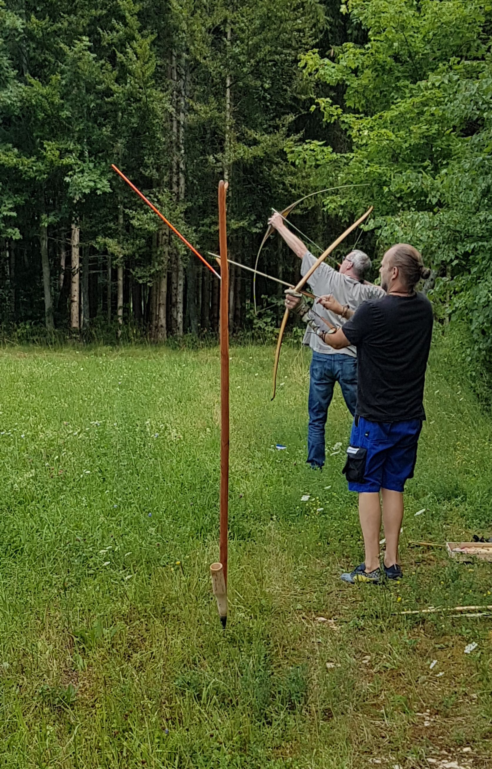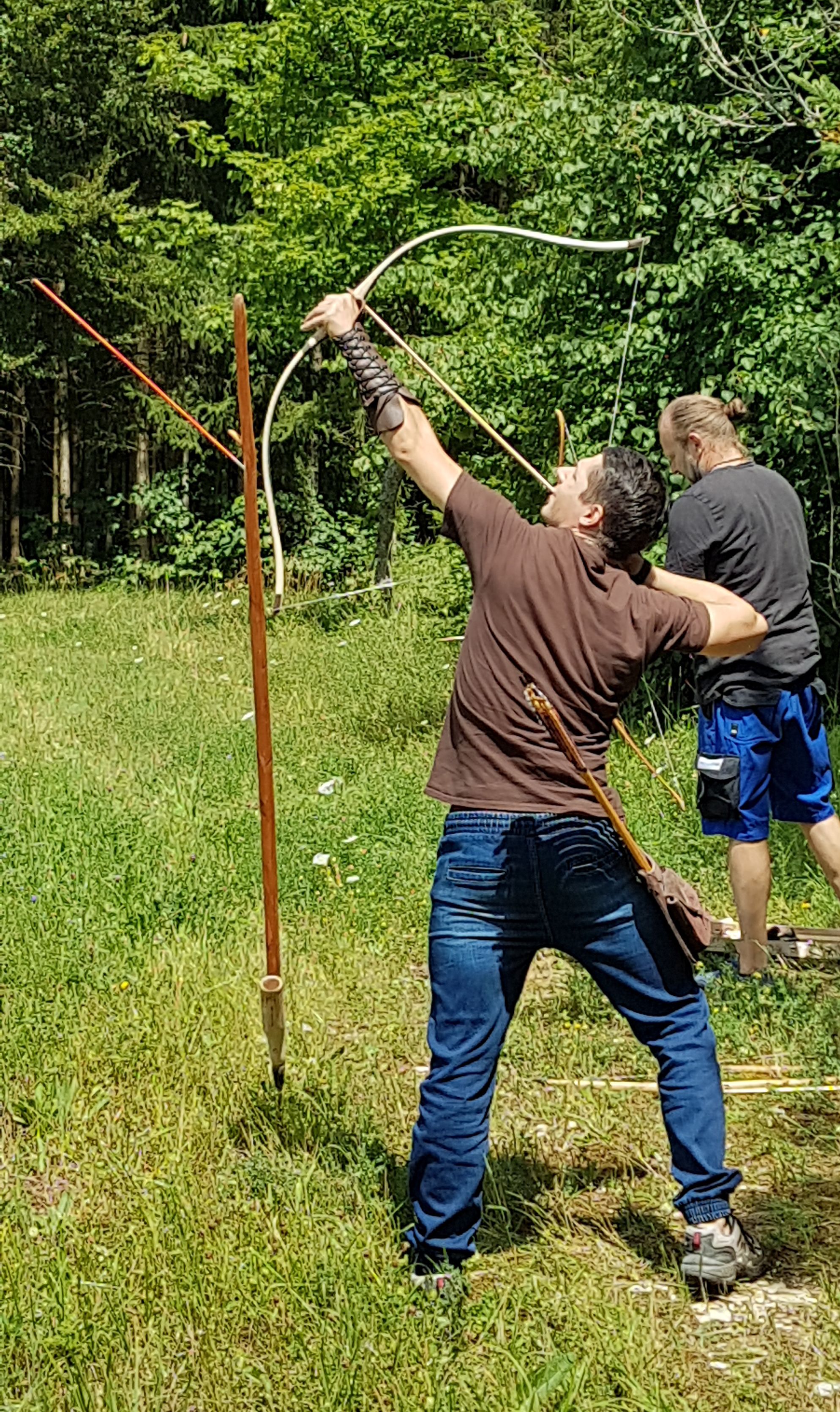 Am besten abgeschnitten hat aber tatsächlich mein Komposit mit meinem selbst gemachten Pfeil. Vermutlich wegen der hohen Auszugslänge von 29". Der flog mit 350 grain erstaunliche 303m. Der Bogen müsste um die 45-50# bei dem Auszug haben. Ich denke fürs nächste mal werd ich Pfeile mit der selben Länge machen, die aber einen stärkeren Tapper haben und somit bei gleichem Auszug leichter sind.