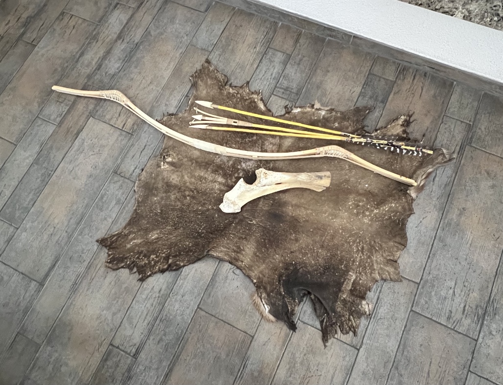 Heute noch ein altes vergammeltes Hirschleder in Form gebracht und Knochenreste veredelt. Der Wacholder bekommt einen Bogenköcher.