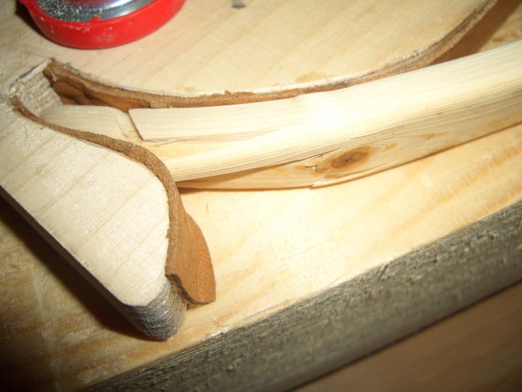 Wichtig ist, dass die Bauchseite im Biegebereich erst mal NICHT getapert ist, sondern parallel bleibt, sonst kann sich bei manchen Hölzern ganz leicht ein Span abspalten.
