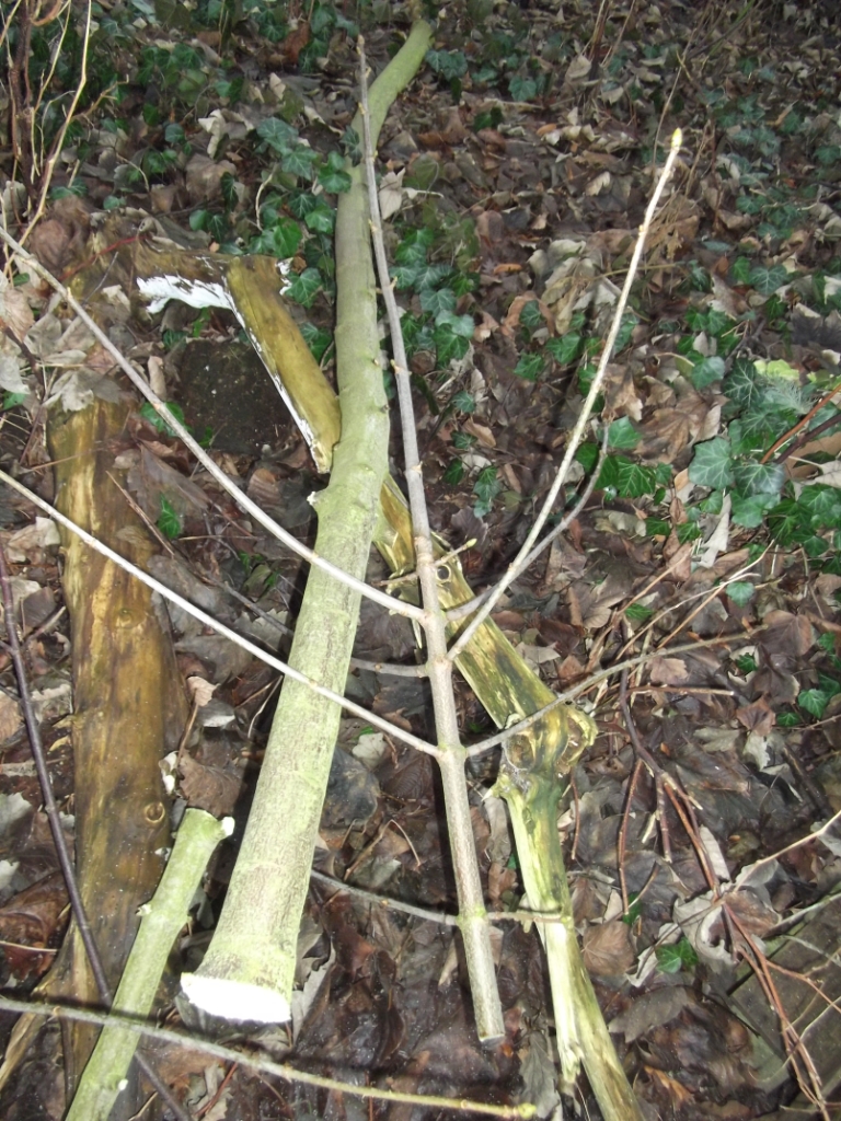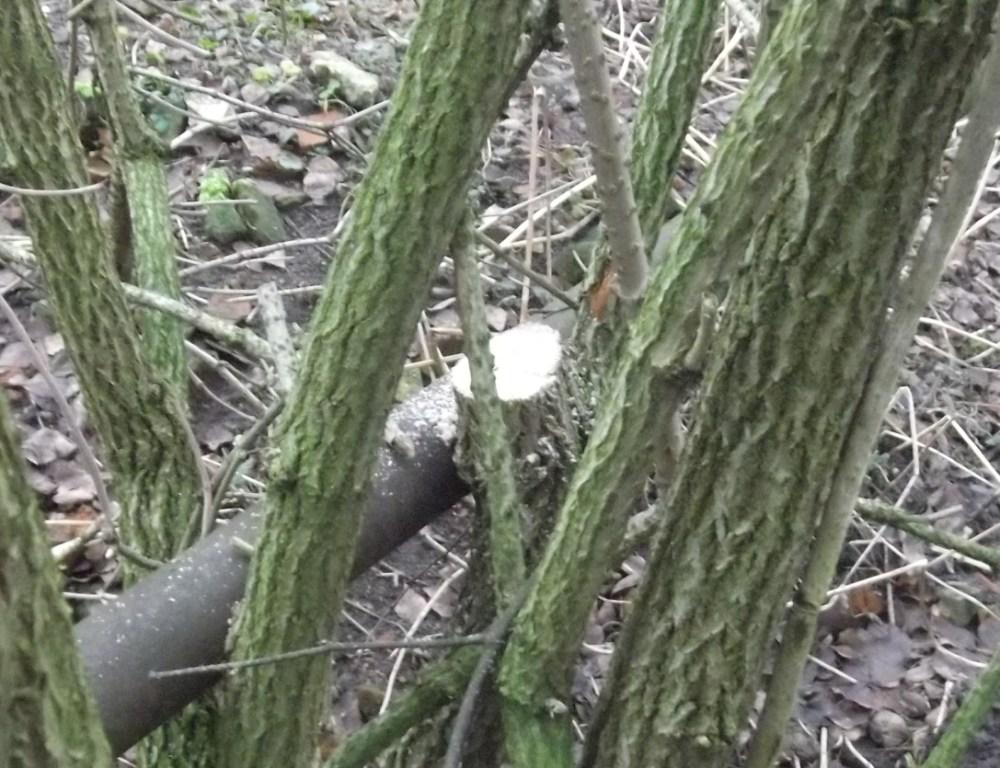Auch ein Hartriegelchen musste dran glauben, Ziemlich dünn, ca. 4 cm. Muss aber morgen erst messen: