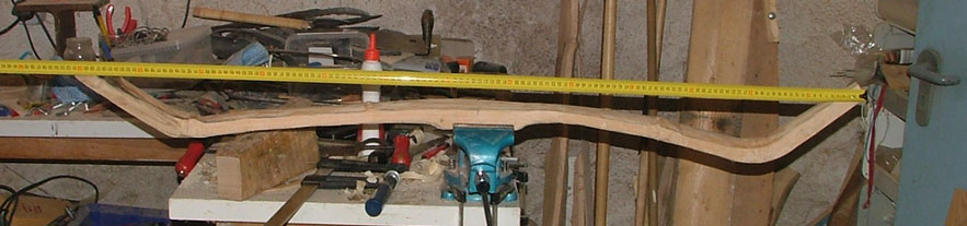 Nachdem der Sohnemann mit seinem ehrgeizigen Projekt den ganzen Tag meine Werkbank belegt hat, muss mein zweiter Sapling bis morgen warten. Aber immerhin er steht schon im Keller 180cm lang unten 8cm oben 6cm und alles dazwischen ist Goldregen (stolz grins). Danke LJB nochmal für den Tip wo das Zeug wächst, der Besitzer des Hangs war übrigens gern bereit einen der Stämme für die Bogenbaukunst zu opfern. Alles weitere morgen