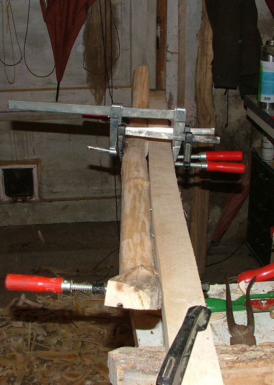 Ich baue eine Bogen wie man es nicht machen sollte: ich hab keinen Plan mehr vom Verlauf der Jahresringe und durchschneide den äußeren Jahresring auf ganzer Länge........