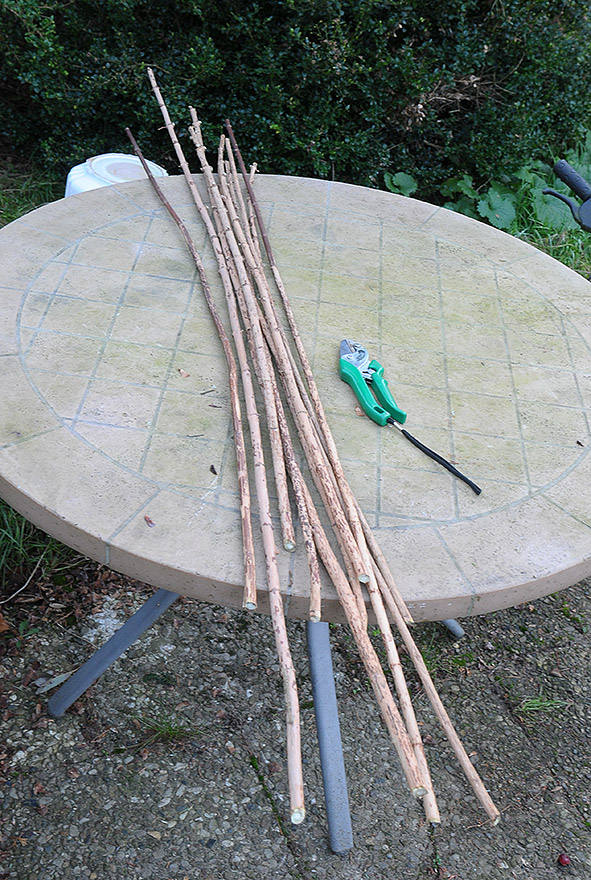 Die Idee mit dem Fahradschlauch ist genial. Ich denke das die Ergebnisse was die Geradheit angeht besser sind als mit einfacher Schnur. Der Schlauch drück ja immer fest an, auch wenn die Schößlinge schrumpfen