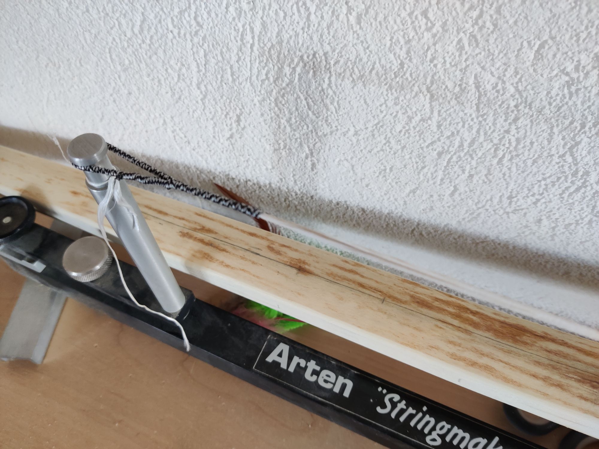 Ich kann nur hoffen das sich da "nur" der Vorbogen vom Griff lösen beginnt. Ich kann an der Klebefuge aber nichts erkannt. Ich denke es wäre besser als nächstes mal die Sehnenwicklungen zu machen und dabei den Griff ebenfalls zu umwickeln.
