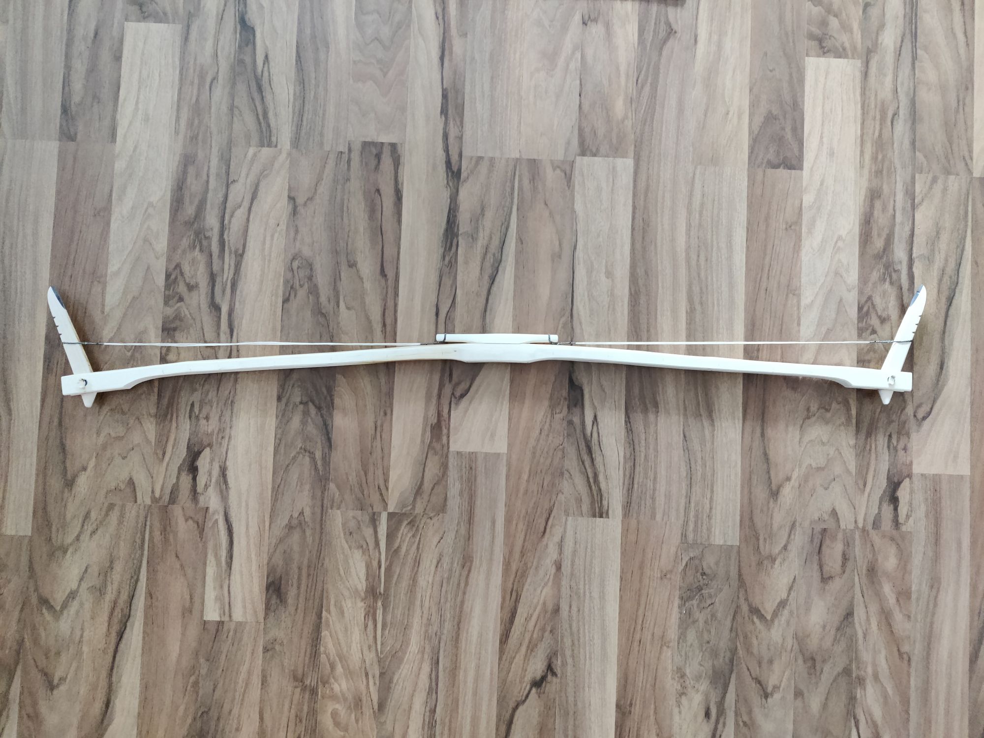 Damit war der Bogen dann bereit fürs Tillern. Komisch dabei war dass der Bogen irrsinnig hart zu ziehen war, die Waage aber nur etwa halb so viel anzeigte wie es gefühlt war. Ich hab ihn also bis etwa 30# belastet und fühlte sich aber nach 50-60# an. Jedenfalls kam bei den 30# dann der Punkt wo die Sehne anfing sich vom Recurve zu heben und sobald die Sehne etwa 2cm Abstand zum Recurve hatte, klappte sich der Recurve schlagartig bis zum Anschlag aus. Dieser Moment kam natürlich nicht an beiden Recurves gleichzeitig. In dem Moment lies das Zuggewicht aber auch so Abrupt nach dass sich die Zuggewichtswaage jedes mal durch den Ruck zurückgesetzt hat