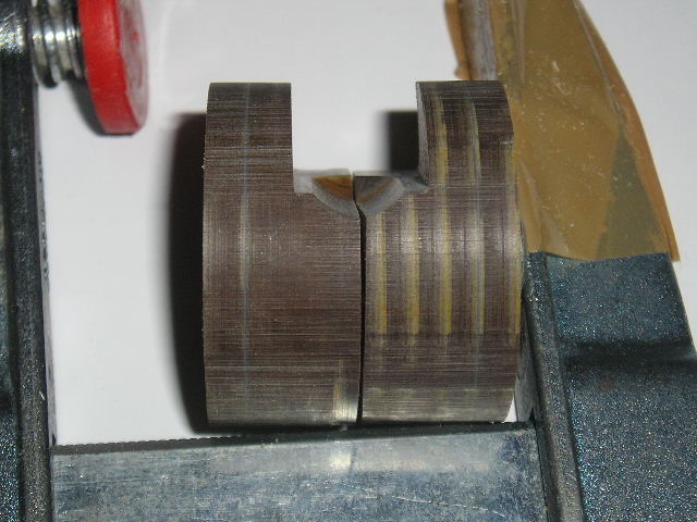 Diesmal ist die Nuss "rund" , Die Bolzenruhe ist bereits gefräst und eine Ausgleichsbohrung