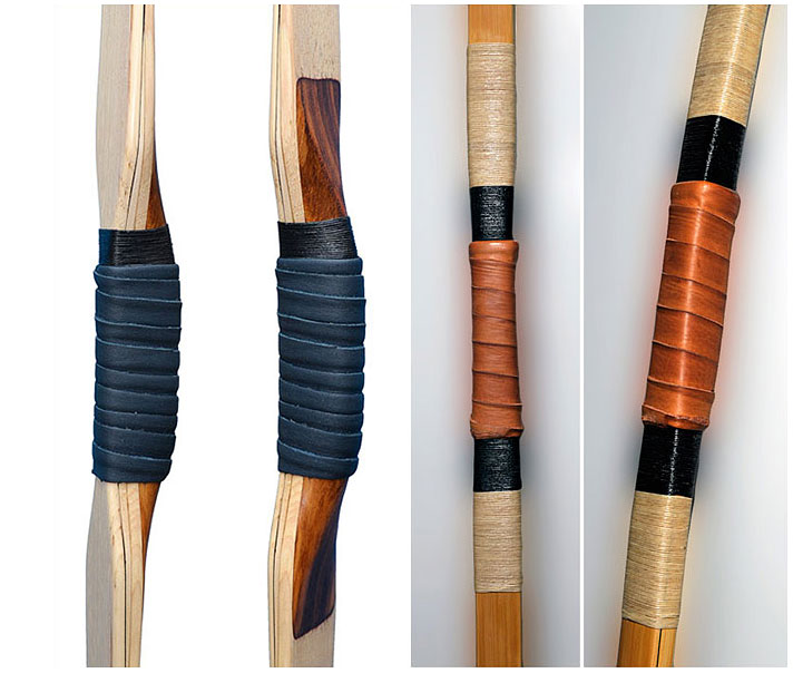 2. Wenn du den Umfang als MAß genommen hast, ziehe ca. 5 - 10mm (je nach Beschaffenheit des Leders) ab. Beim aufbringen machst du das Leder etwas feucht (nicht tropfnass, das dürfte dein Bogenholz nicht wirklich mögen) und ziehst das Leder mit der Naht "auf Stoß". Sieht erstens schöner aus und greift sich auch gut. Alternativ dazu nehme ich manchmal auch ein Lederband aus dem gleichen Material wie das Griffleder, mache in das Griffleder mit der Ösenzange Löcher und "flechte" das Band ein. Wenn das Leder schön weich ist, begriffelt sich das sehr gut und sieht sogar ganz schick aus.
