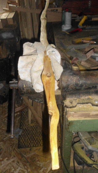 Nach dem säubern mit der Raspel wurde der verbliebene saubere Rest betrachtet und der Bogen im Rohling gesucht.