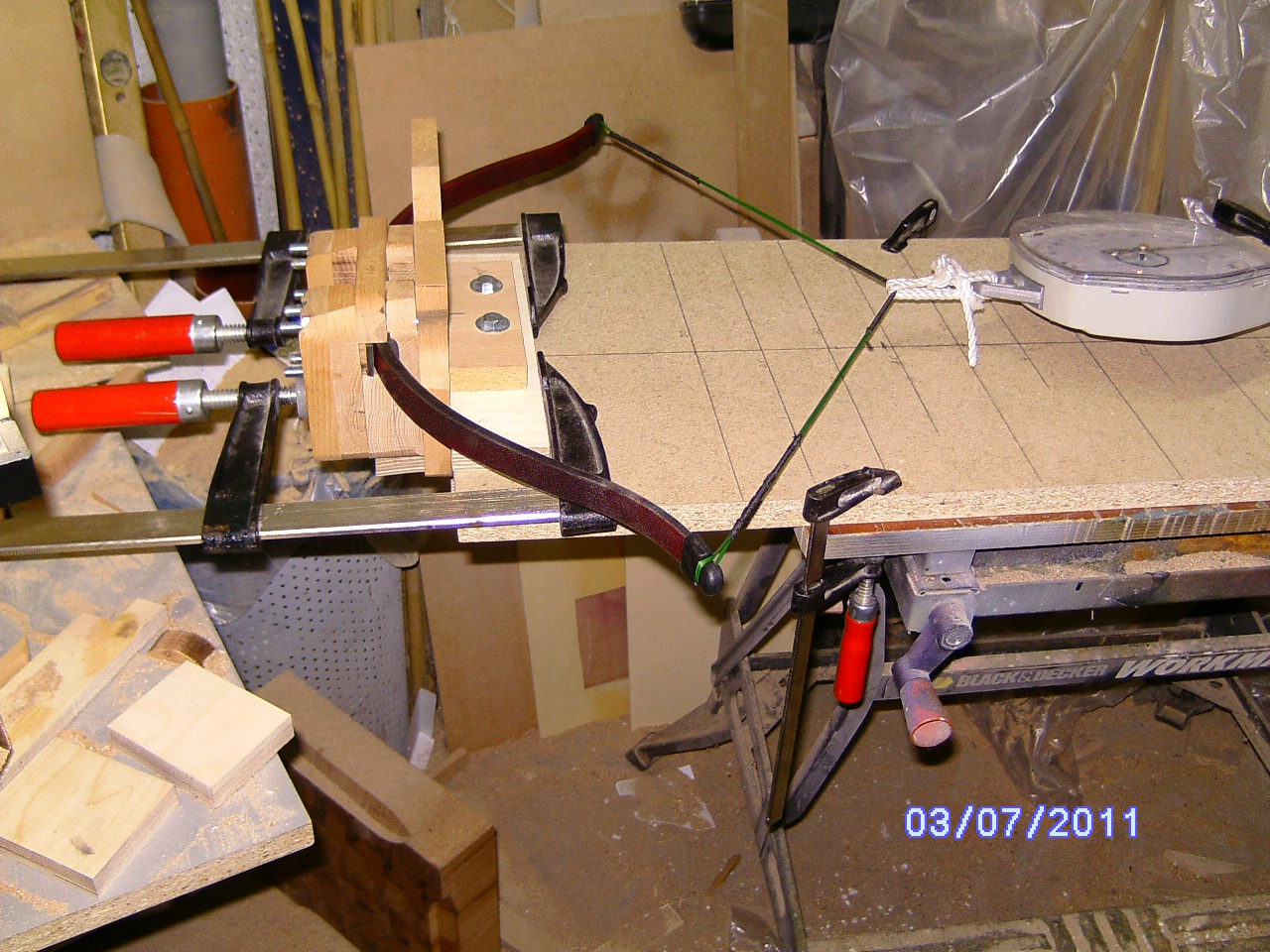 Nun ist es an der Zeit Sehne und Wurfarme vorzubereiten.
