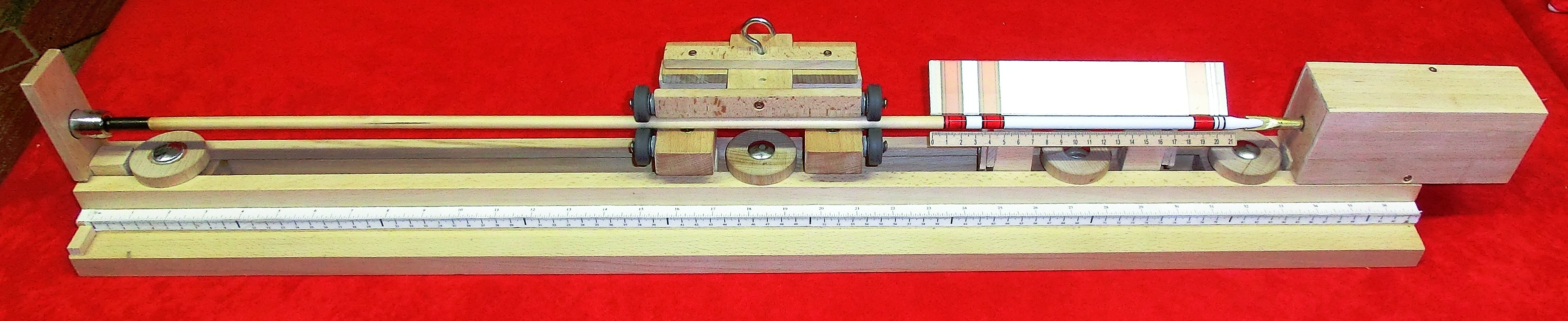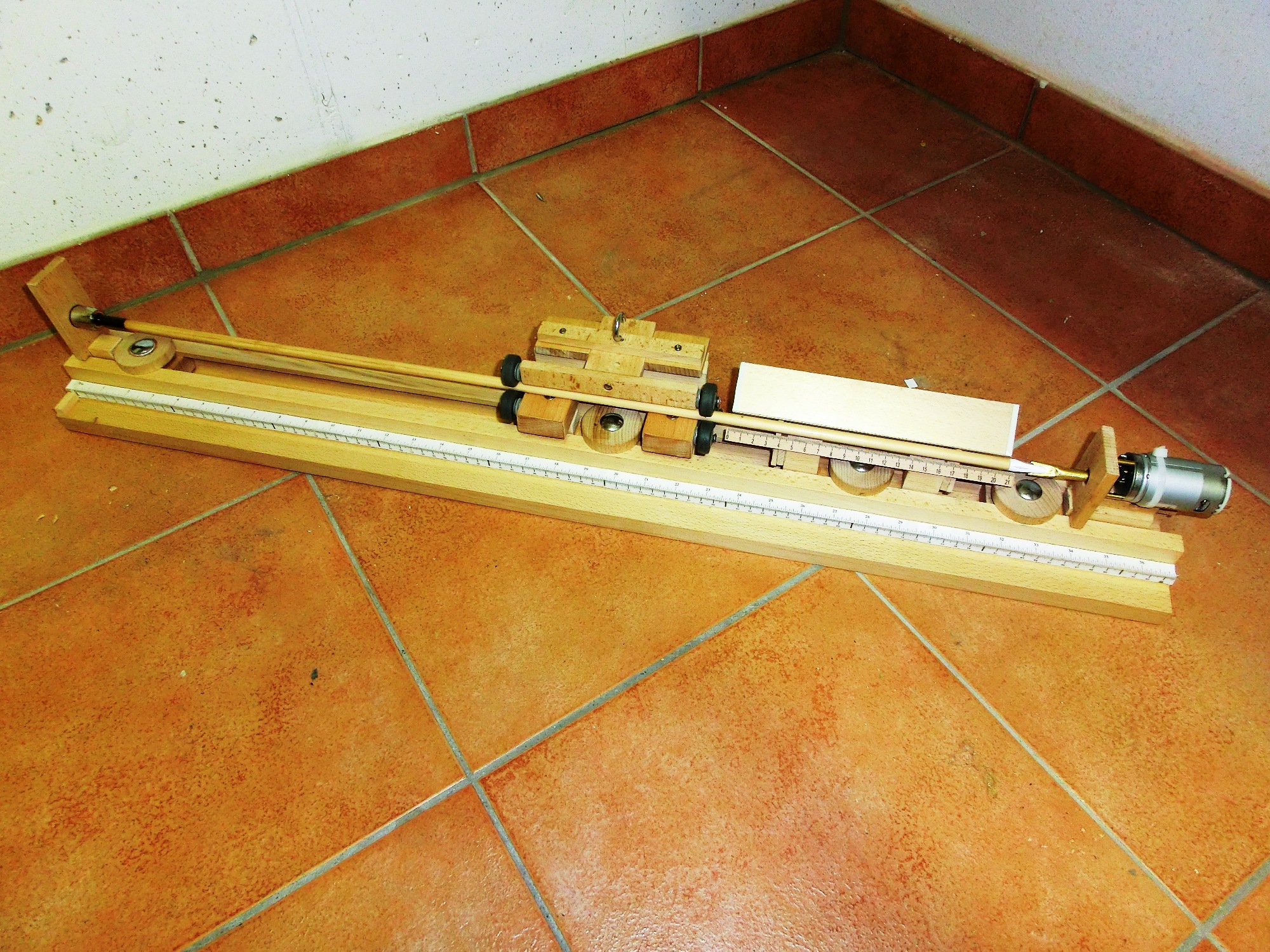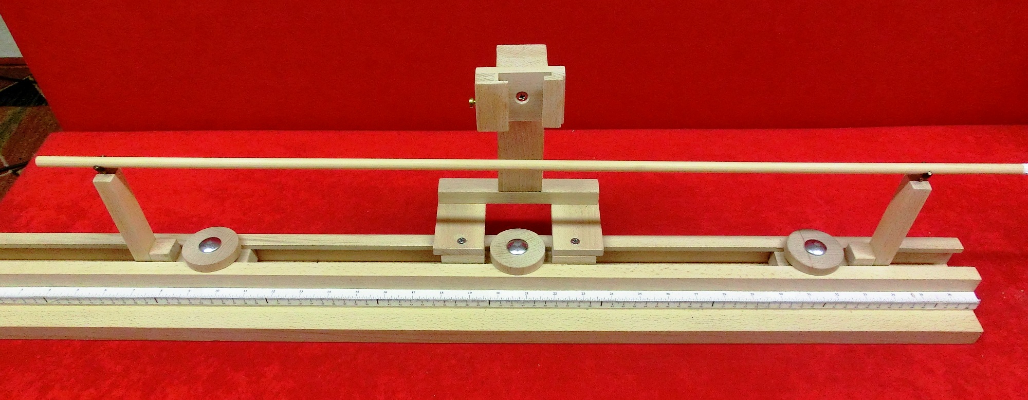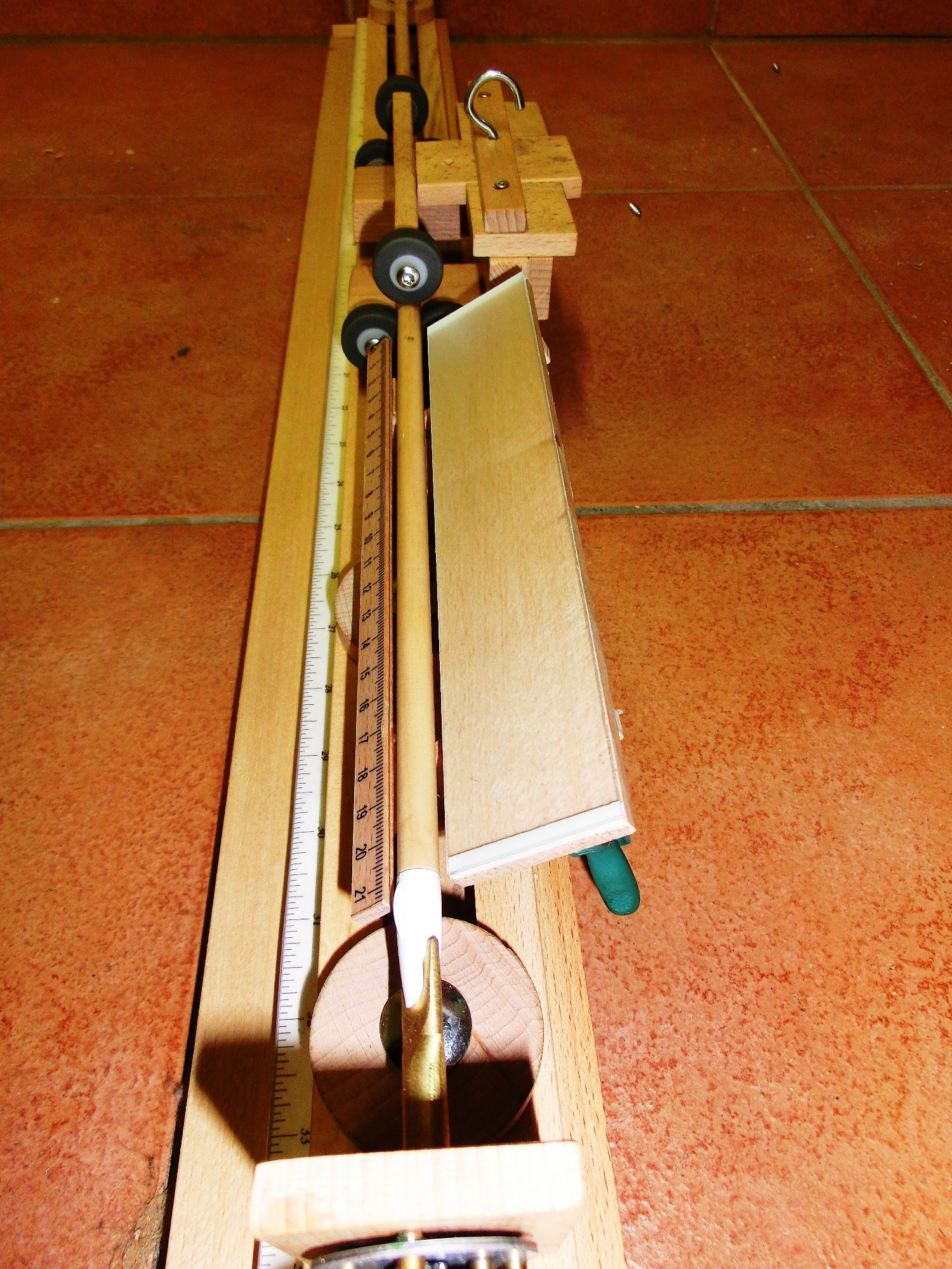 Im Mittelteil ist eine kleine Änderung nötig. Durch die versetzten Rollen reicht schon ein kleiner Druck, damit sich der Schaft biegt. Daher habe ich die Anordnung der oberen Rollen geändert.