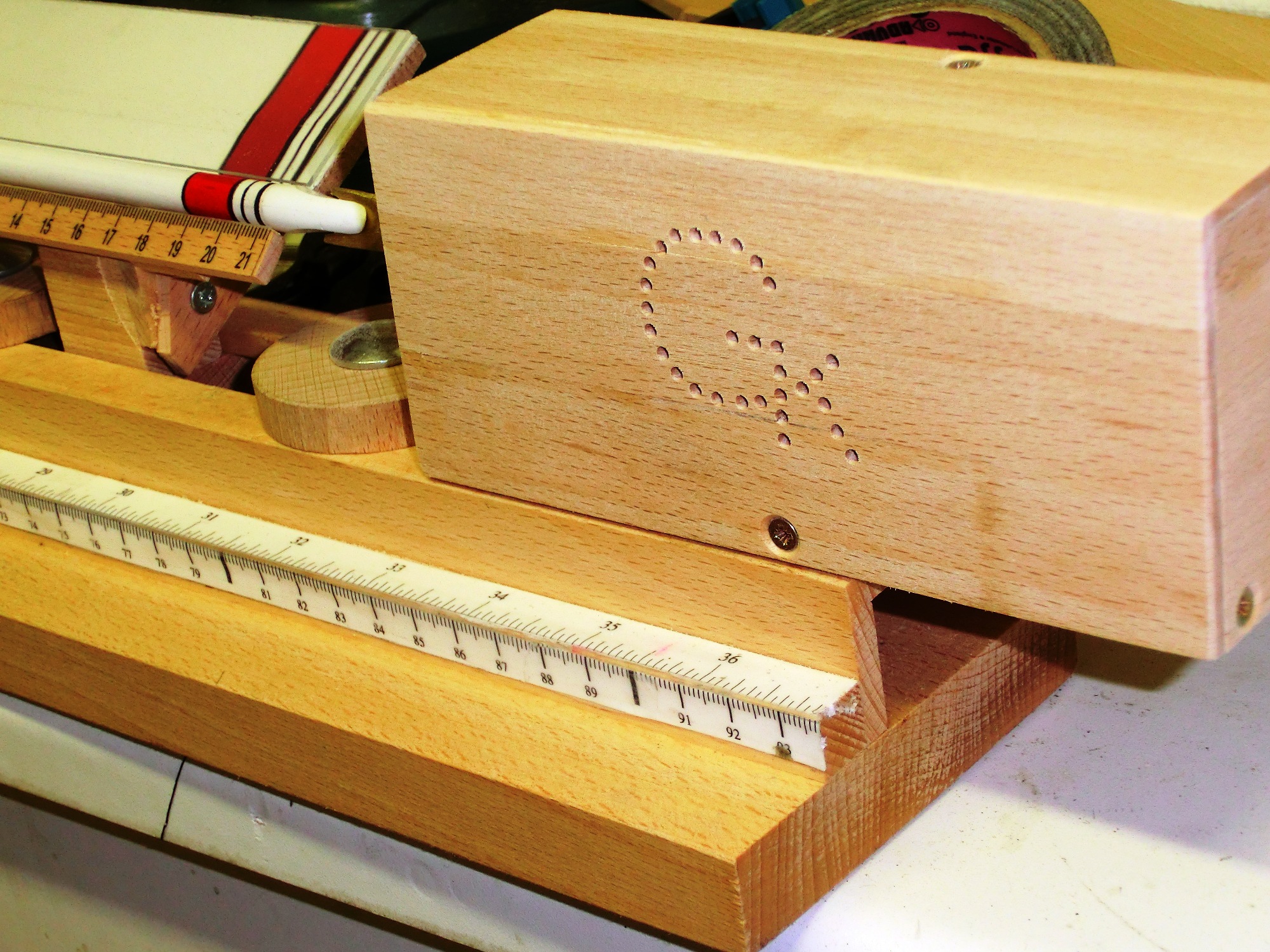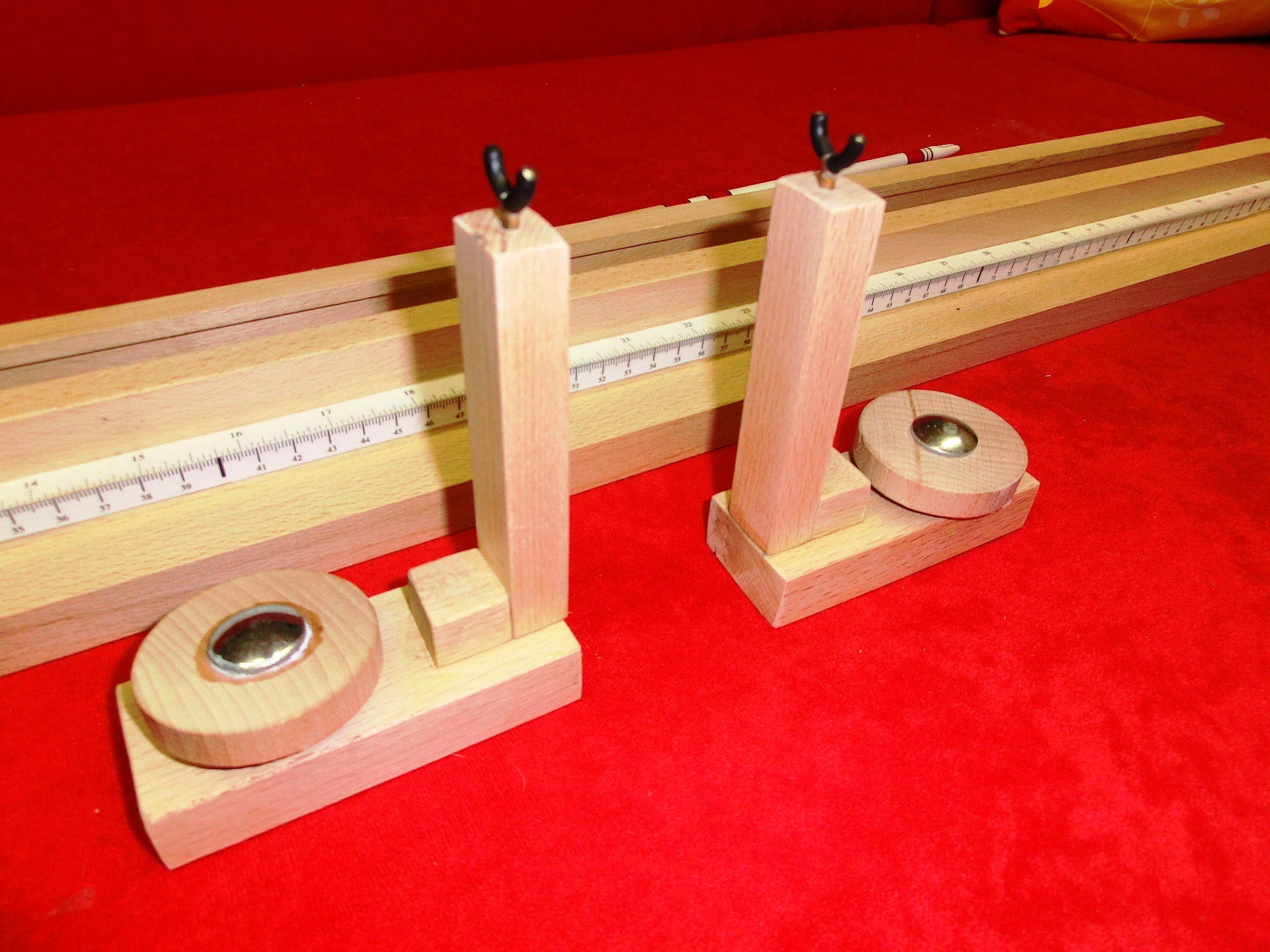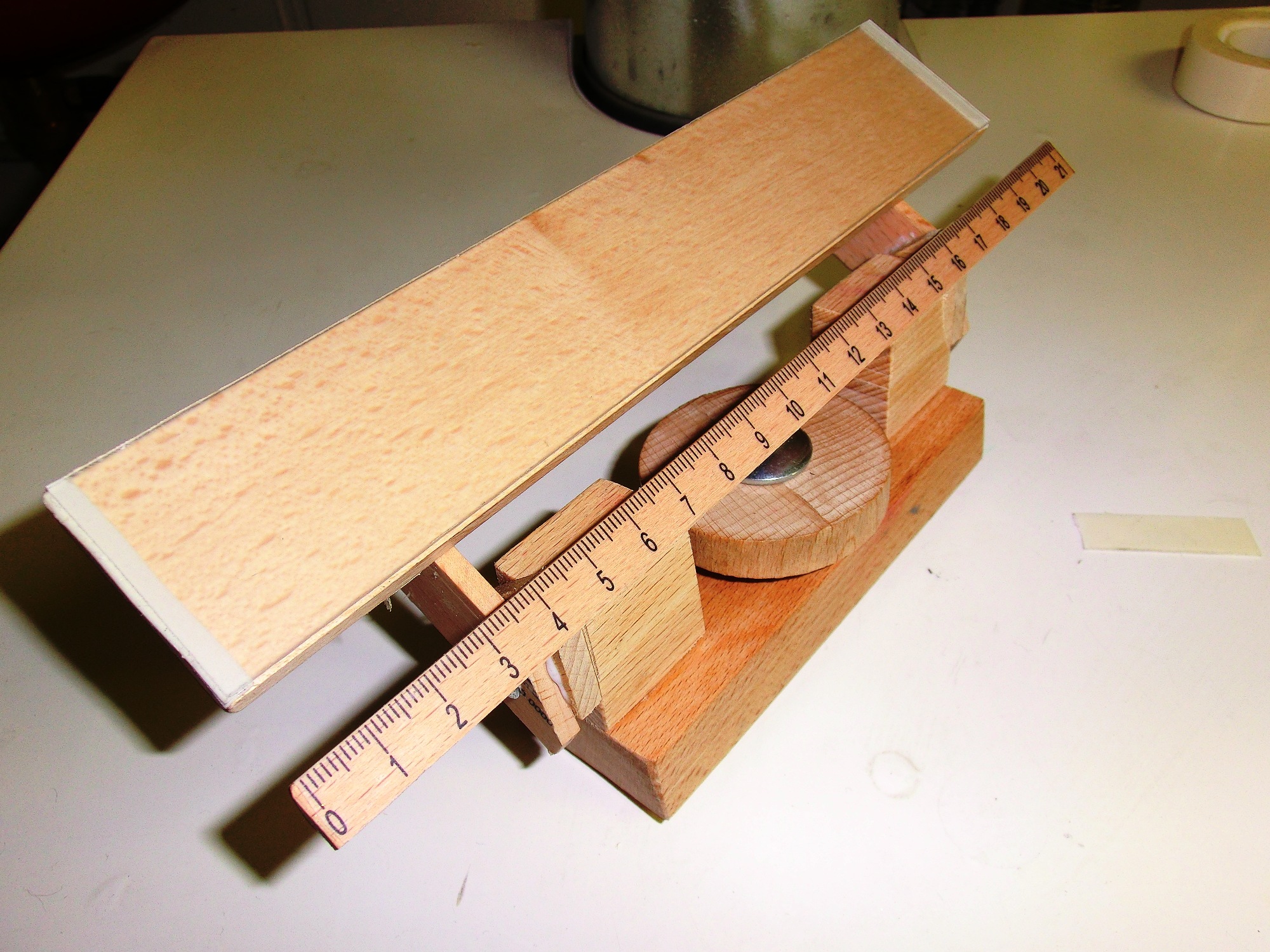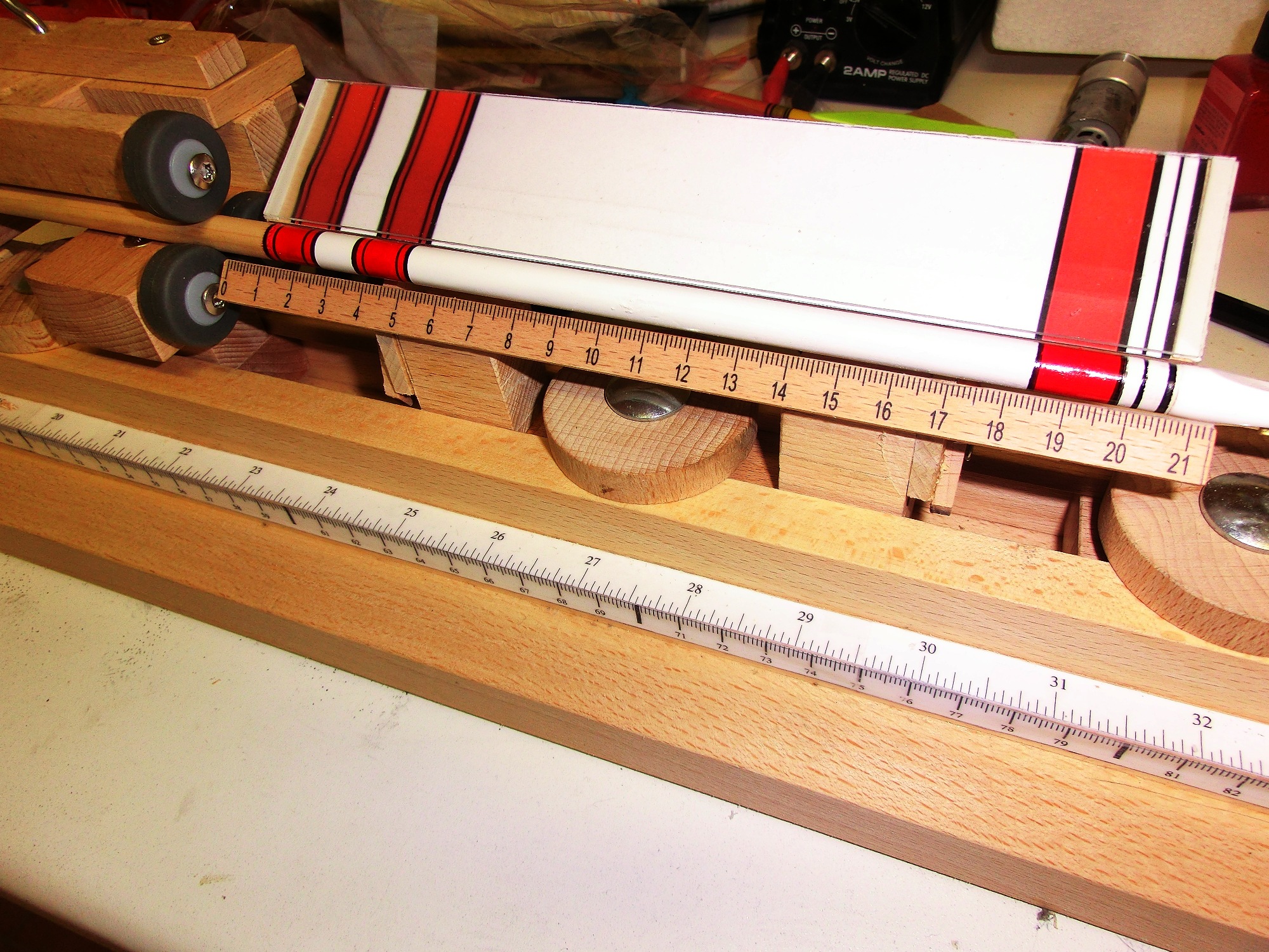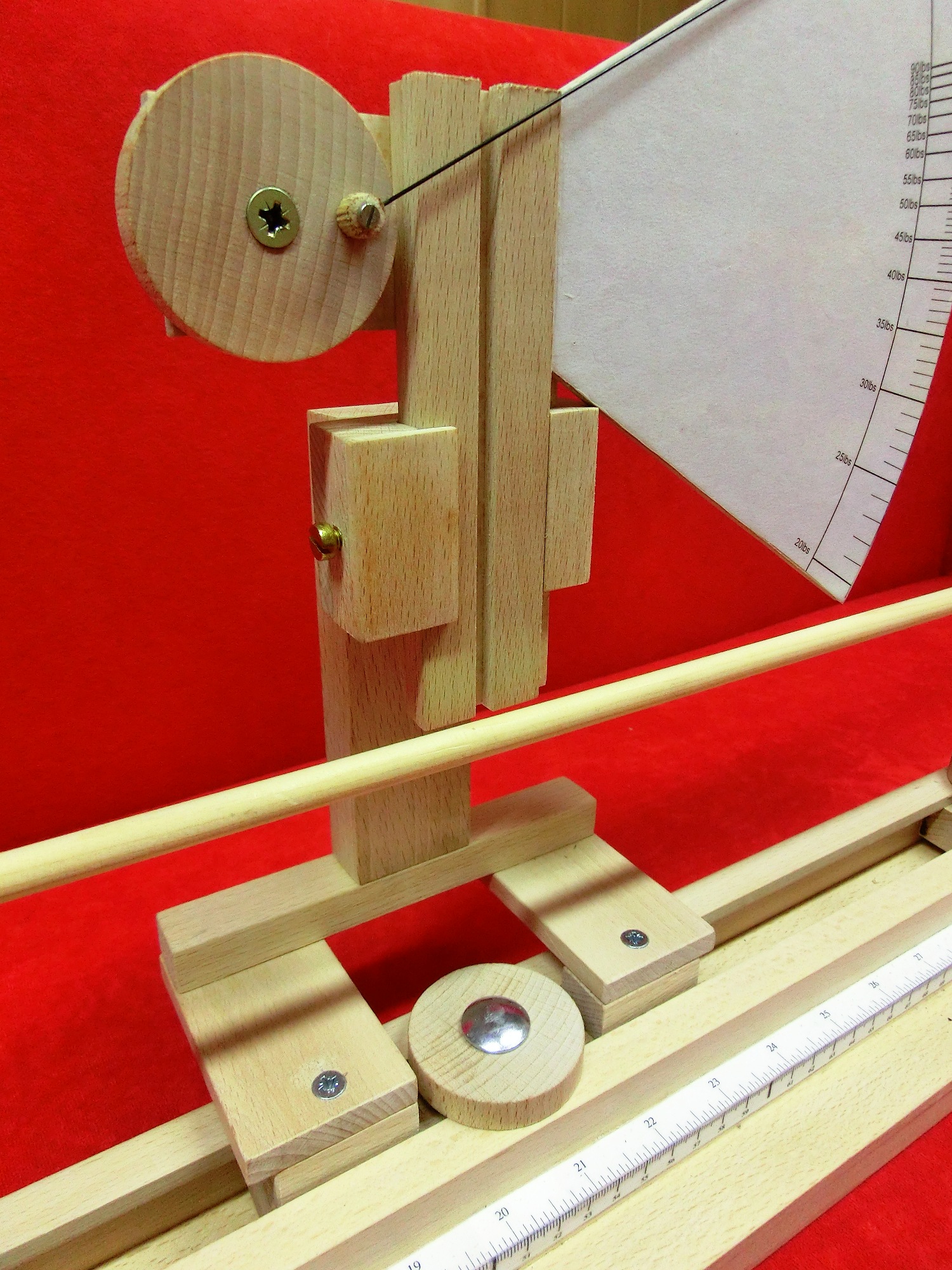 Im Mittelteil ist eine kleine Änderung nötig. Durch die versetzten Rollen reicht schon ein kleiner Druck, damit sich der Schaft biegt. Daher habe ich die Anordnung der oberen Rollen geändert.