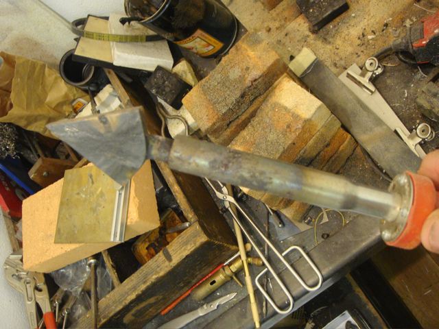 als Spitze ist ein Kupferstab drin mit angelöteter Messingplatte (hatte kein Kupfer in der Stärke) - gelötet natürlich hart mit Silberlot (860C)