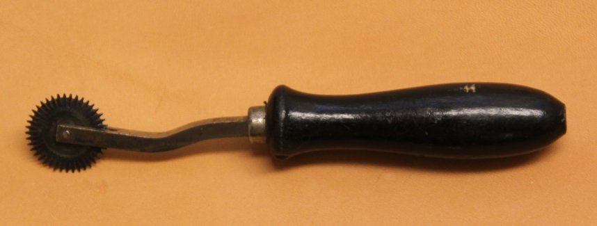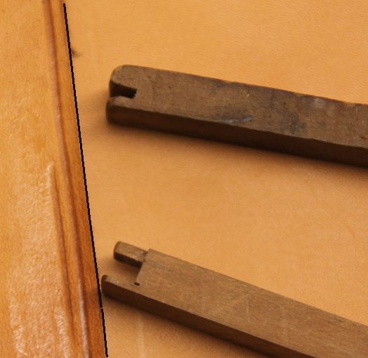 Um die Vertiefung im Leder zu machen kann man auch in ein Stück Hartholz eine Kerbe einsägen um die Rille im Leder, z. B. für eine Naht, vorzugeben.