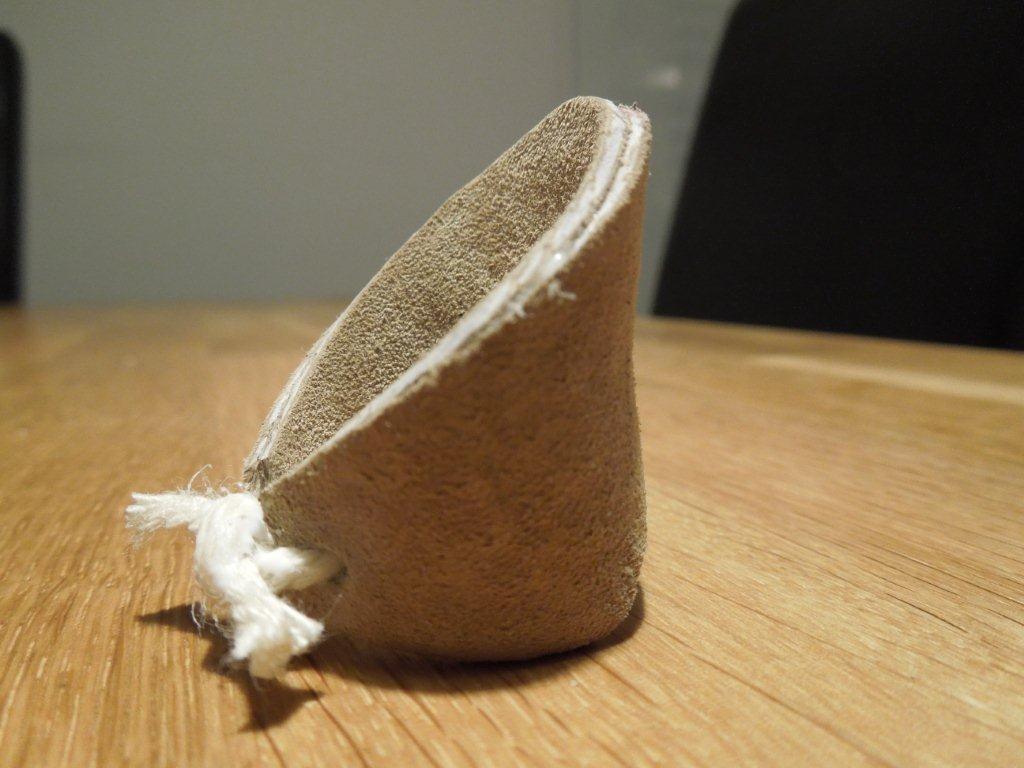 hier mein selbstgemachter Leder Daumenring, nach der oben erwähnten Anleitung: