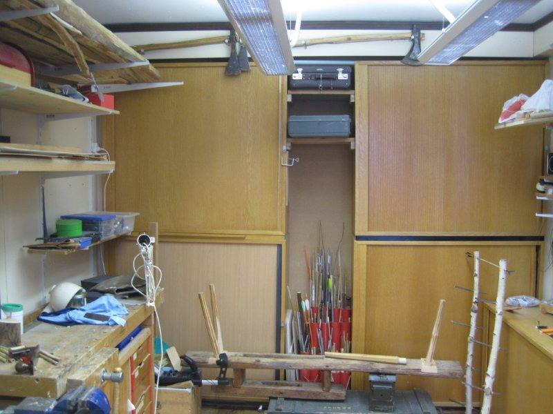 Meine Werkstatt ist ein selbst gebauter Schuppen mit 2,4m auf 4m.