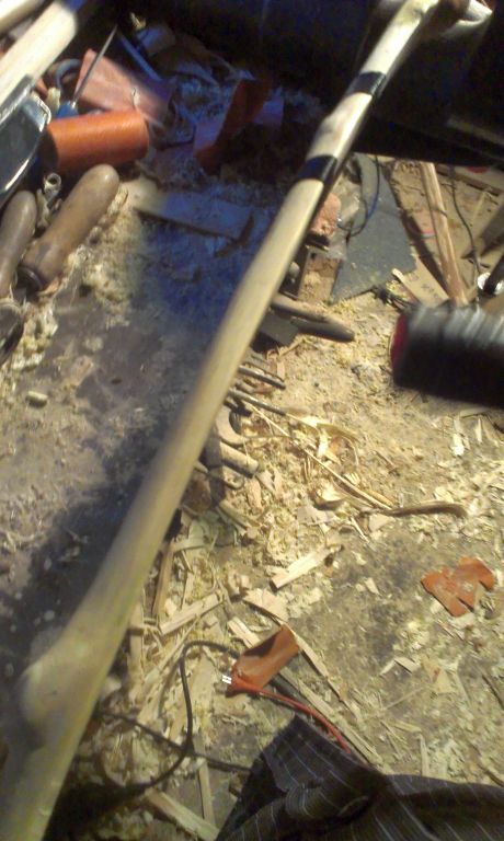 Der Knüppel war ziemlich tief eingerissen und deswegen hab ich den quasi halbiert. Deswegen musste auch der Griff dran.