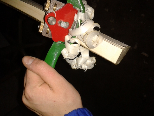 Um hier Zeit zu sparen, hab ich ihn erst eingesägt und dann einen großen Teil mit dem Ziehmesser rausgespalten(sorry für die Quali, Akku war fast leer=> kein Blitz)
