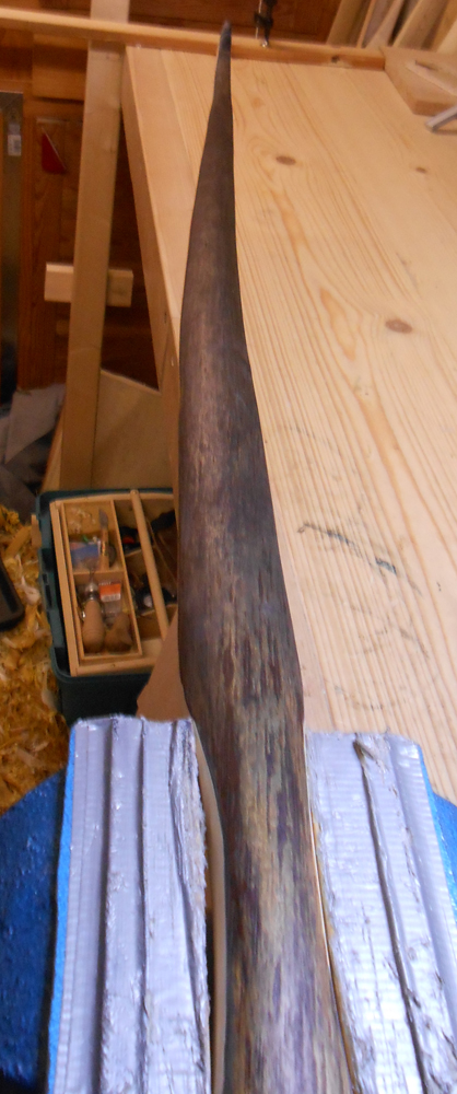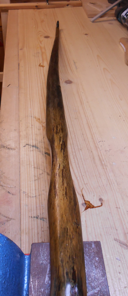 Heute hab ich den Bogen noch ein wenig nachbearbeitet, dann gebeizt und mit Schellack versiegelt.