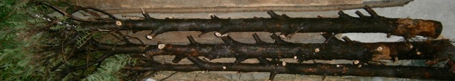 Habe mir heute beim vorbeifahren noch ein bisschen backup besorgt. Tjaja, der Täter kehrt immer an den Tatort zurück. Man sieht die Schneise wo ich mir Stave 1 rausgesägt habe. So, und falls noch Zweifel an dieser Thujasorte bestehen, hier noch ein Bild von den noch immer frisch aussehenden Zweigen: Falls jemand auch so ein dunkelkerniges Thujenstämmchen haben will, könnt er sich das beim SDBBT im März abgreifen - sagts einfach, ich brings mit..