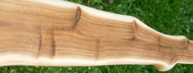 Hab den Bogen an den WA-Enden noch um einiges erleichtert, vor allem hab ich die WAs in den letzten Dritteln schmaler geschliffen (samt Tipps) und finde er biegt jetzt etwas weniger stark im Griff und ausserdem hab ich die vielen, dicken Seitenäste eingekürzt.