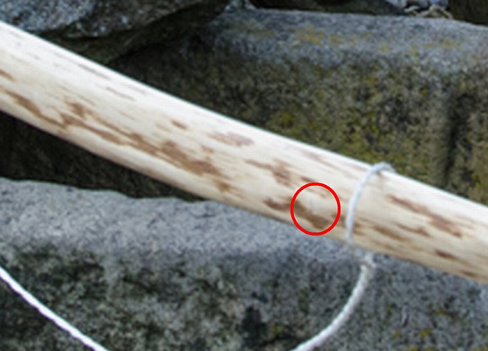 Aber was mir auffällt ist, daß der Beginn der Rückenrisse immer an einer Stelle OHNE Bast ist und diese Stellen verdammt "eben" ausschauen.