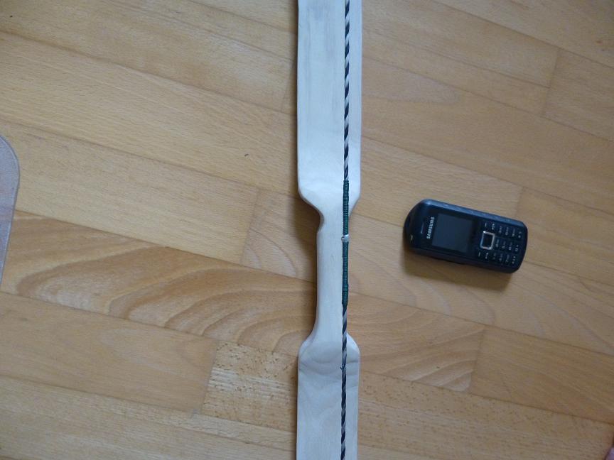 So! Ich melde mich mal wieder zurück mit dem Bogen. Ich habe ihn jetzt fast fertig und ein paar Fragen habe ich noch. Ich habe ihn jetzt am Bauch breiter als am Rücken gemacht. Das sollte den Stauchbrüchen entgegenwirken. Wie von Euch vorrausgesagt hat der Bogen natürlich auch mächtig Set bekommen. Er hat jetzt etwa 200 Schuss hinter sich und hat 2" Set. Mit der Geschwindigkeit bin ich jetzt persönlich zufrieden. Mir reicht es ersteinmal. Das angestrebte Zuggewicht habe ich nicht ganz geschafft und bin bei 36# gelandet. Ich habe erstmals Dämpfer ausprobiert, dazu habe ich einfach recht dicke Wolle genommen. Der Bogen ist wirklich leiser geworden, was mir eine Verminderung der Schussleistung auf jedenfall wert ist. Die Biegung habe ich von 3 Leuten unabhängig prüfen lassen und alle meinten es wäre gleichmäßig. Muss für euch sonst noch mal ein Bild machen lassen.