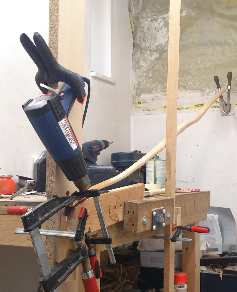 Guten Abend allerseits, hier gings auch mal weiter. Die Biegearbeiten sind alle fertig - und jetzt läuft die Sehnenlinie endlich genau durch die Mitte am oberen Ende des Griffbereiches.