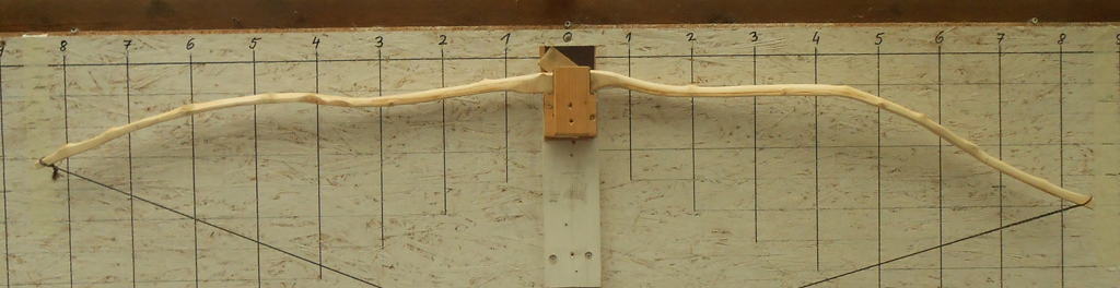 Heute bin ich angefangen schon mal ein bißchen am Weißdorn rumzubiegen, aber nur ein bißchen. Rechts ist der obere WA. Wo ich da so dran rumgeszogen hab, hab ich mir die Frage gestellt, ob es Sinn machen würde, das Ende vom oberen WA ein wenig zu flippen damit die Nocke ein wenig höher kommt und ich zumindest einen halbwegs schießbaren Bogen daraus bekomme. Ansonsten weiß ich im Moment ehrlich gesagt nicht so recht weiter, ich glaub ich muss mir noch so den einen oder anderen Gedanken dazu machen.