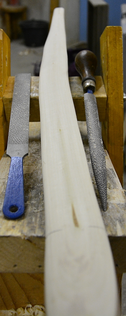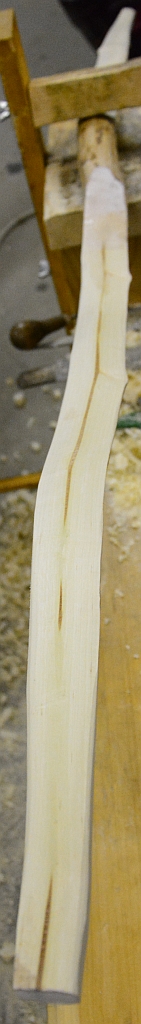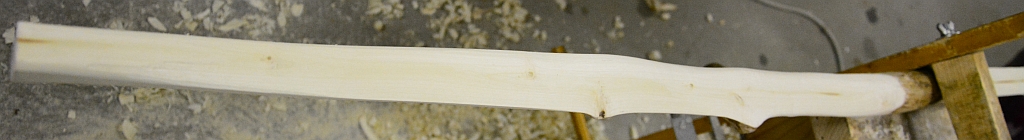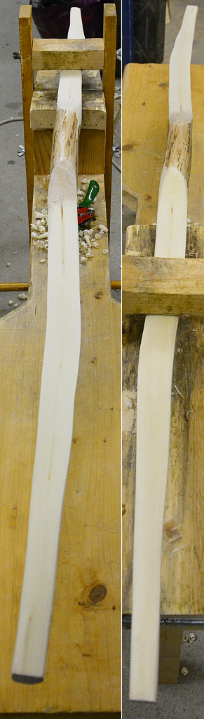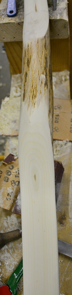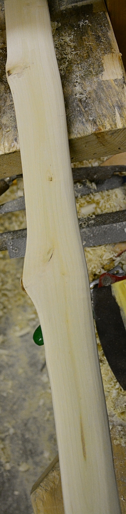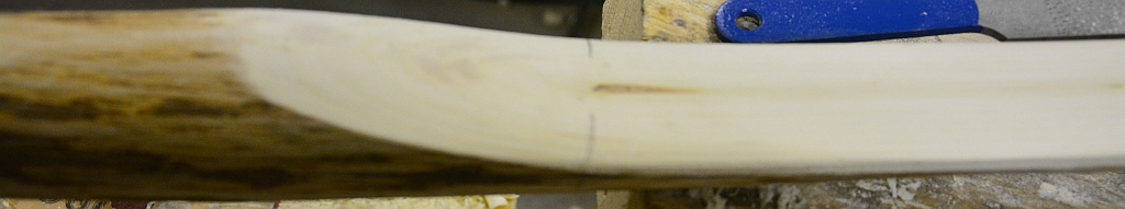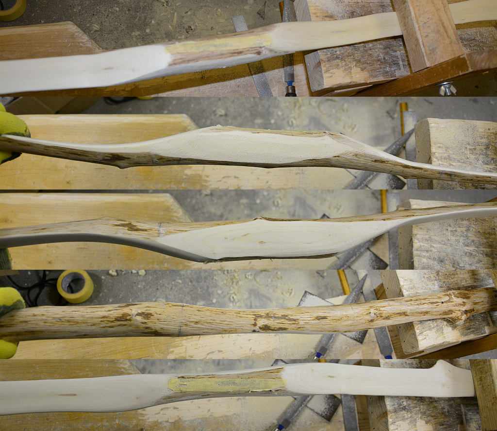 Zu dem Zeitpunkt überlege ich noch, den auch mit Hitze zu richten, trotz der Äste. Ab hier arbeite ich viel mit Schultertiller und kleinen Arbeitsschritten, wo man keine großen Änderungen sieht. Aus Angst vor richtig üblem Set verwende ich meinen Tillerstock wenig bis gar nicht. Zum Schultertiller kommt hin und wieder noch der Fußtiller.