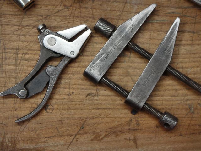 Werkzeug - Niethämmer/Punzen, Messwerkzeuge, Säge, Feilen, Messer/Meissel/Stichel, Schmirgelhözer.<br />Grosse Feile ist eine Valtitan Feile von Valorbe - das Non-Plus-Ultra in Feilen, mit einer Härte von 72 RC. Wer die einmal benutzt hat langt nichts Anderes mehr an.