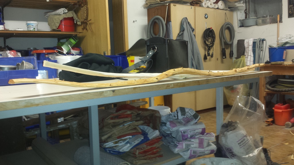 Da der Rohling schon ziemlich auf Bogenmaß gebracht worden ist konnte er dort gut trocknen und hat jetzt noch die letzten Tage in meinem Zimmer verbracht in welchem der tägliche Wasserverlust zwischen 2 und 3 Gramm betrug. Schaut also schon mal gut aus