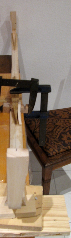 Dann stand die Verleimaktion des 3-teiligen Kerns an. Das hat viel besser geklappt als beim fünfteiligen. Die 3-teilige bauweise ist auf jeden Fall weniger anfällig für Verwindungen. Das spricht für die Methode Karpowicz.