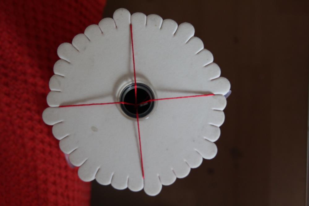 Die Farbaufträge am Korpus brauchen seine Zeit. In der Zwischenzeit wird die Kordel geflochten nach Kumihimo Art mit Seidenfäden.Gebraucht werden dafür 4 Seidenfäden von 0,8mm und 6m länge .Dieser einzelne Faden von 0,8mm besteht aus 40 einzelnen Seidenfäden. Die 4 Fäden auf der Flechtscheibe anbringen und mit der einfachsten Flechtung beginnen. Die Kordel die daraus ensteht muss ca. 1,5 m sein.