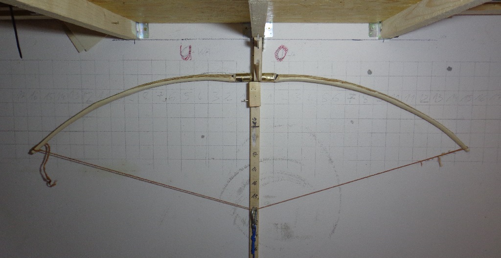Das LB muss jetzt in Klammern... habe die Wurfarme auf Grund der Übergänge am Griff soweit schwächen müssen, dass der bei den gut 1,90 die er hatte bei unter 40# gelandet wäre.