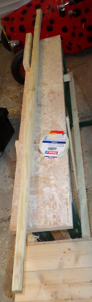 2ten Holler auf gute 3,5 breite und 4cm Dicke zugesägt und mit zum Trocknen gelegt.