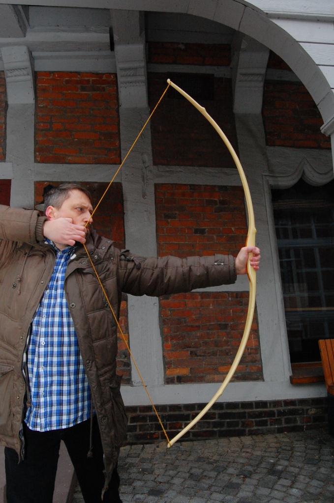 - Sehne : Leinen, 40 Fäden, da muss noch ne Mittenwicklung drauf, das hält hervorragend, ist aber, ist aber bei dieser Stärke unangenehm dünn,