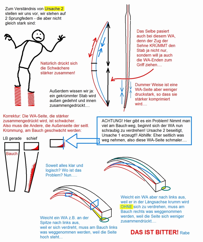 Falls er aber eingelaufen ist, dann wird der Stoff - in seiner Schrumpfrichtung aufgeklebt- immer elastischer bleiben. (Dadurch gibt er dem Bogen zwar zunächst mal seine Vorspannung zurück - leiert sich aber nach vielem Schiessen auch wieder etwas aus. )