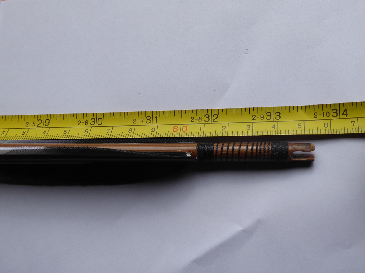 Die von mir benutzten Pfeilschäfte waren aber auch nicht maschinell zu Tode geschliffen worden, sondern erkennbar von Hand mit Gefühl an den Nodien geglättet worden.