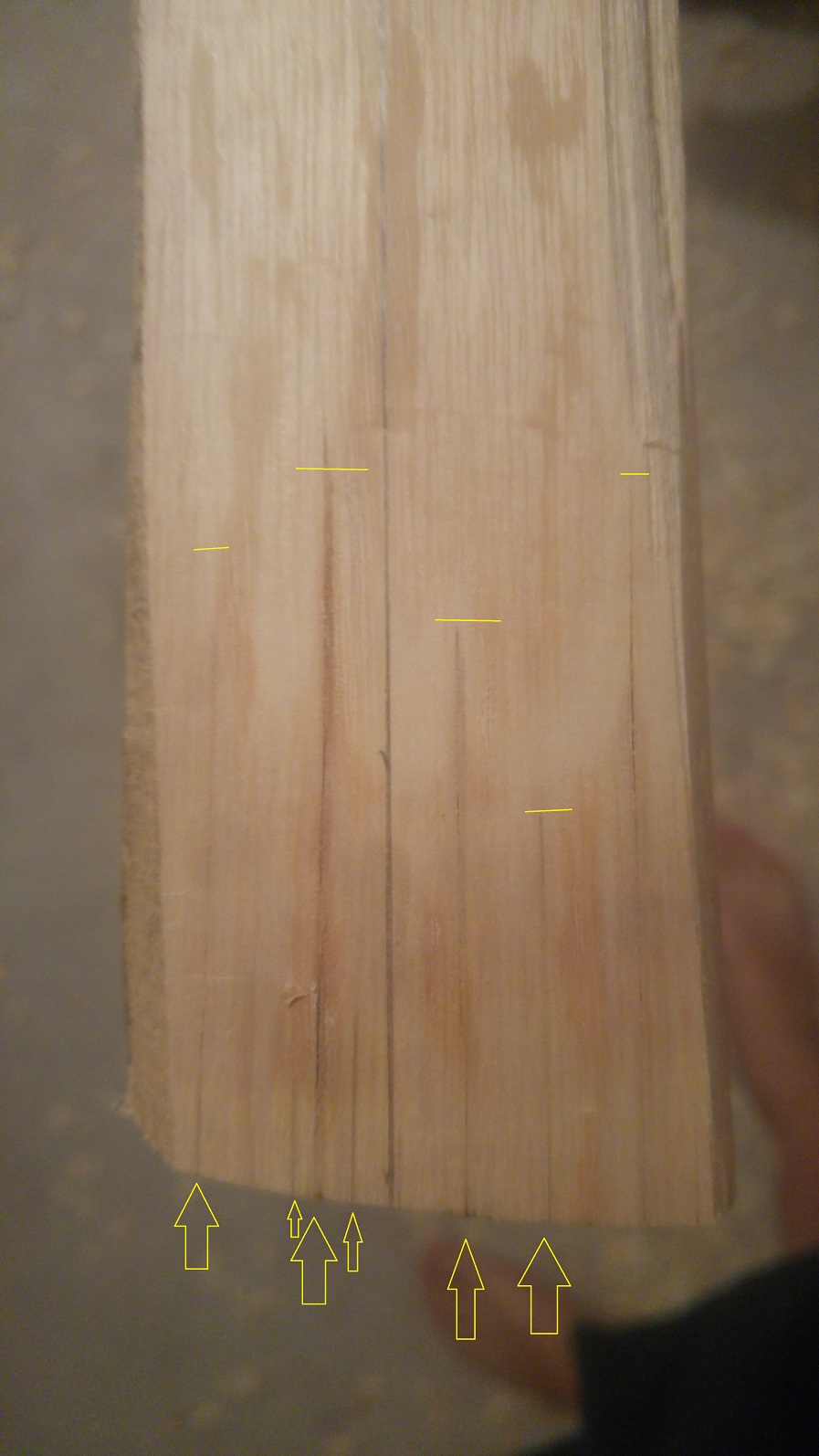 Ich hab nun einen Jahresring freigelegt und möchte damit einen Flachbogen bauen, der 45# Zugkraft bekommen soll.