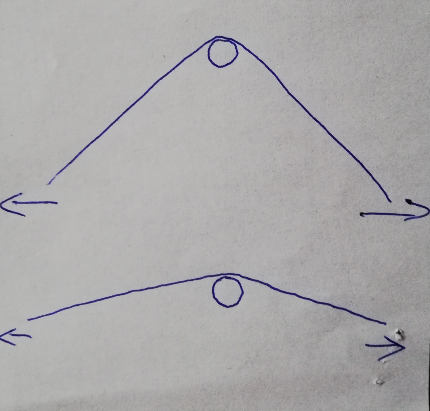 Ich meine nicht direkt die Kraft die man anhand einer gleichmäßigen Auszugskurve sieht. Ich dachte eher an den "Kraftaufwand" und Sehnenwinkel.... Ich versuchs mal zu erklären. Der Kreis im Bild ist eine volle Wasserflasche. Die Sehne liegt auf dem Tisch. Wenn ich jetzt die Sehne in Pfeilrichting auseinander ziehe rutscht die Flasche auf mich zu.