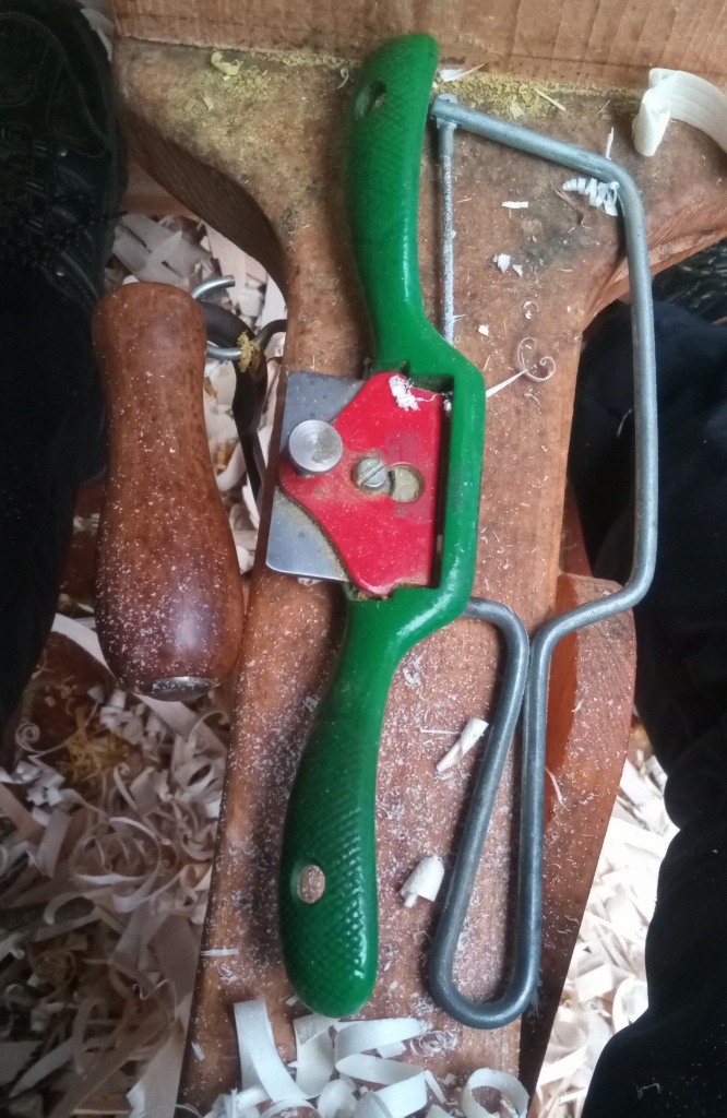 Heute konnte ich mal etwas machen, den Hasel auf die endgültige Breite bringen, ein leichtes Trapping probiert, und die dicke auf brauchbare Maße bringen. Ein paar provisorische Sehnenkerben an der Seite. Dank Drehwuchs hat sich das Ding verdreht. Da muss ich mir noch überlegen, wie ich damit umgehe. Gewicht aktuell 772g, der dürfte so gut wie trocken sein. Bilder von Werkzeug und vom Verdrehen.