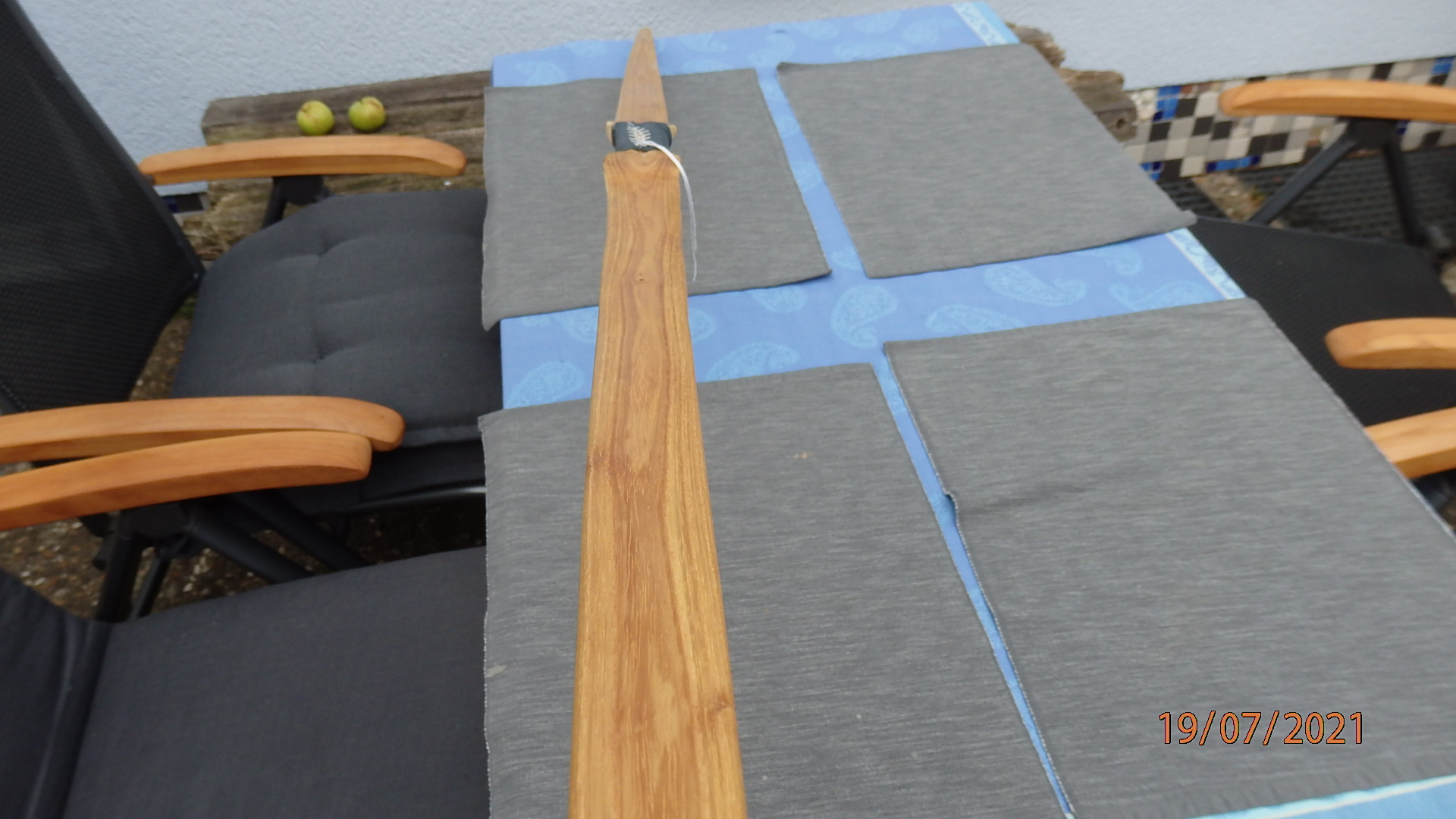 Das wichtigste am Bogen ist wahrscheinlich der Tiller. Den kann man nur beurteilen wenn man den Bogen auch im abgespannten Zustand und im Vollauszug von der Seite sieht. Am besten abgespannt, Standhöhe und Vollauszug vor ruhigem Hintergrund, horizontal und von der jeweils selben Seite fotografieren. Dann bekommt man hier auch gute Tillertips für den nächsten. Gerne auch Daten wie Zugewicht, Auszugslänge, Bogenlänge, Gewicht, Designhinweise etc.