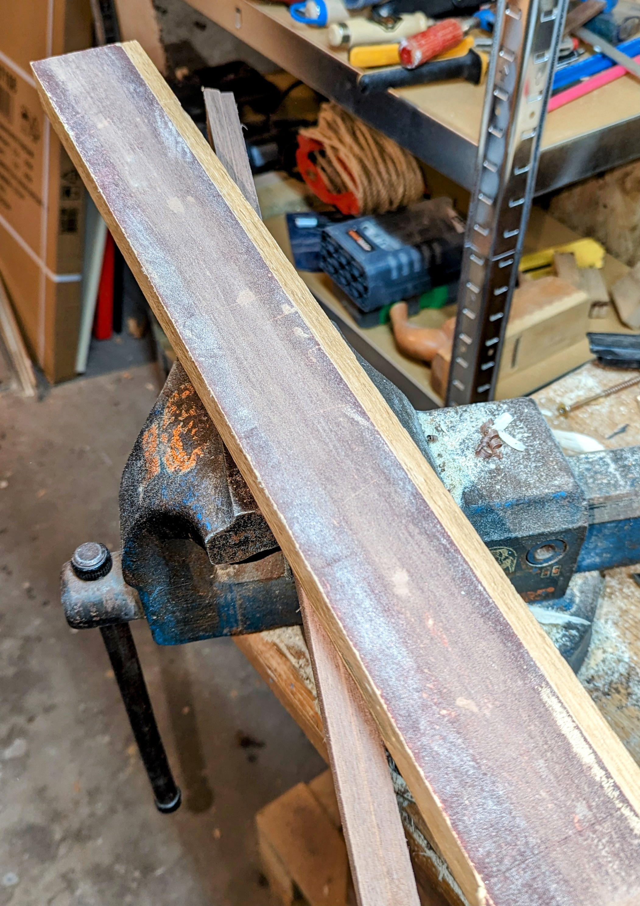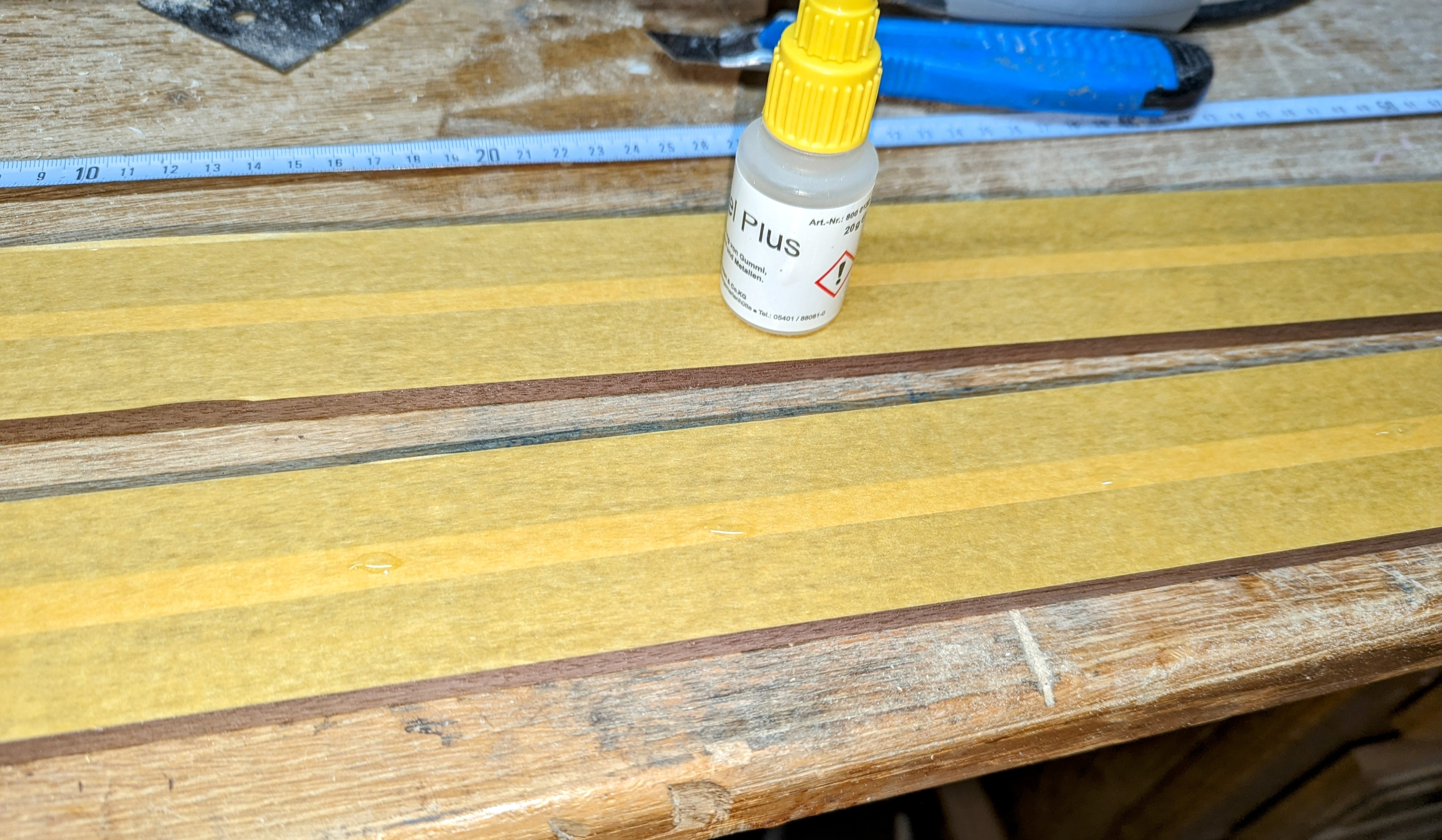 Eigendlich wollte ich vor dem Verleimen die Innenseiten noch Ölen. Hab ich aber vergessen. Jetzt wird es schwieriger aber geht auch.